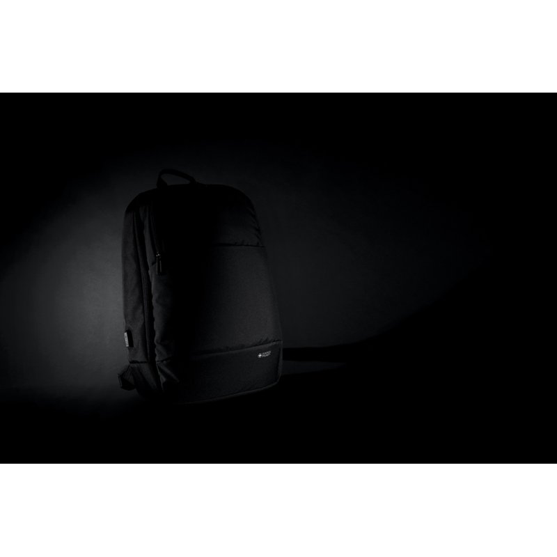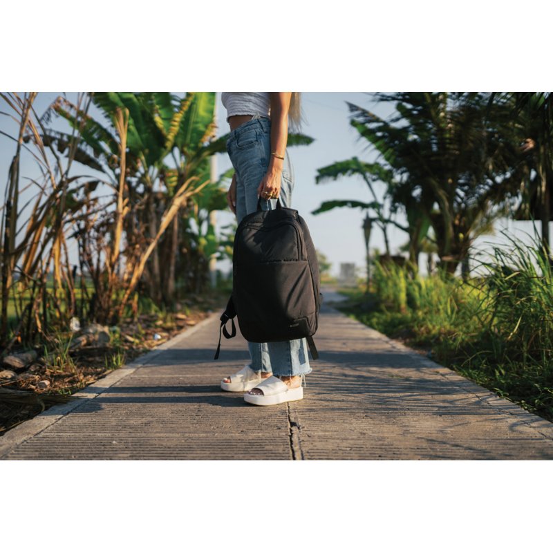 Рюкзак для ноутбука 15,6’’ — это стильное и экологичное решение для города, поездок и путешествий. В просторном основном отделении располагается мягкий карман для ноутбука, который защитит его от царапин и повреждений. Снаружи есть дополнительный карман для необходимых под рукой вещей. Дополнительное удобство обеспечивает встроенный USB-порт: вы сможете зарядить телефон даже в поездке. Рюкзак изготовлен из переработанных пластиковых бутылок и не содержит ПВХ. Для создания каждого рюкзака мы использовали 28,7 поллитровых пластиковых бутылок. Сертифицировано AWARE™. Наличие индикаторных частиц AWARE™ подтверждает, что мы действительно используем переработанные материалы. 2% с продажи каждой вещи, отмеченной сертификатом AWARE™, мы перечисляем в поддержку всемирной организации Water.org.