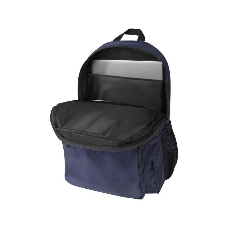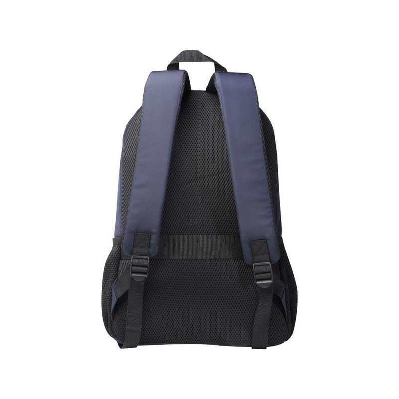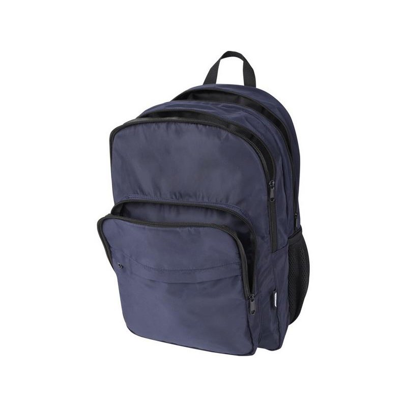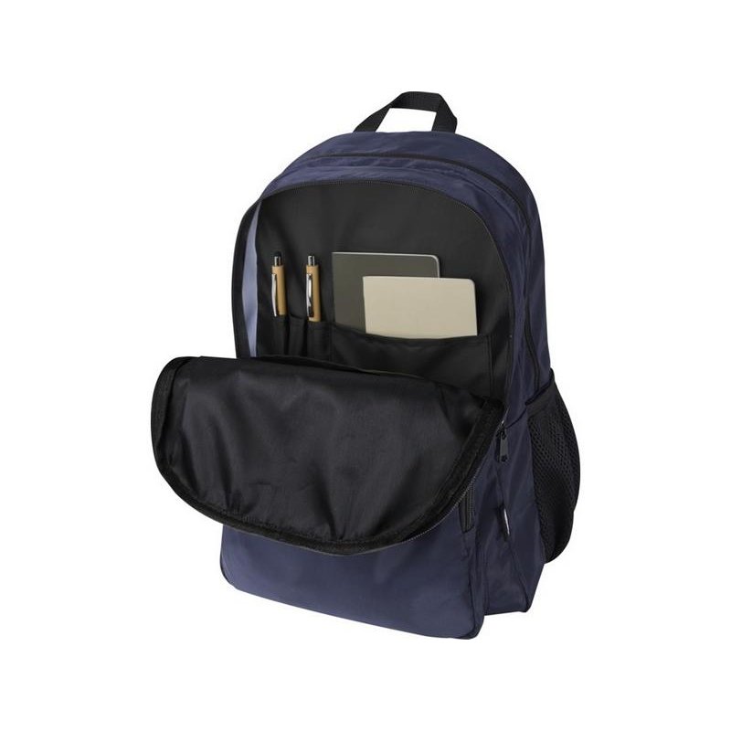 Рюкзак Trend Plus изготовлен из сертифицированной согласно GRS переработанной мягкой и немнущейся ткани и качественной подкладки из RPET. Рюкзак оснащен отделением для ноутбука диагональю 15, отделением-органайзером, передними карманами на молнии, боковыми эластичными сетчатыми карманами и сетчатой вентилируемой задней частью с лямкой для крепления к ручке чемодана. Регулируемые плечевые ремни для оптимального комфорта при ношении. Объем: 20 литр. Выдерживает вес до 10 кг. Не содержит ПВХ. GRS certified recycled polyester.