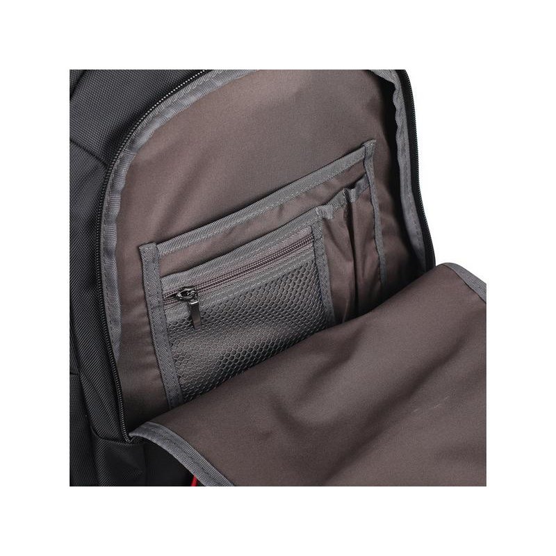 Вместительный и большой бизнес-рюкзак с элегантной красной отделкой подойдет как для передвижения по городу, так и деловых поездок. Рюкзак состоит из большого отделения, наружного кармана спереди и двух боковых карманов на молниях, создающих дополнительное удобство. Внутри многофункциональный органайзер с сетчатым карманом на молнии, сетчатая спинка. Лямки регулируются по длине.
