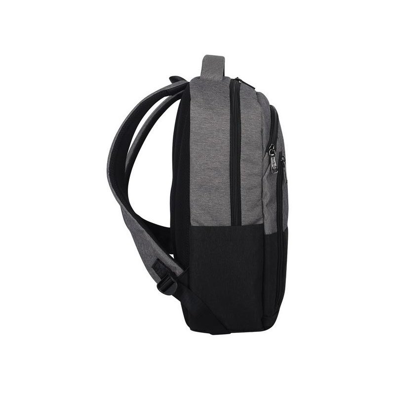 Деловой рюкзак для ноутбука с тремя наружными карманами на молниях. Удобная широкая ручка. Сетчатая спинка. Лямки регулируются по длине.