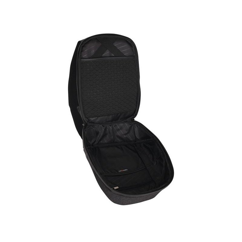 Одно большое отделение закрывается на двустороннюю молнию. Внутри есть карман на молнии и несколько небольших открытых отделении для хранения мелких предметов. На задней стороне рюкзака есть небольшой карман для хранения ценных вещей, которым требуется дополнительная защита.