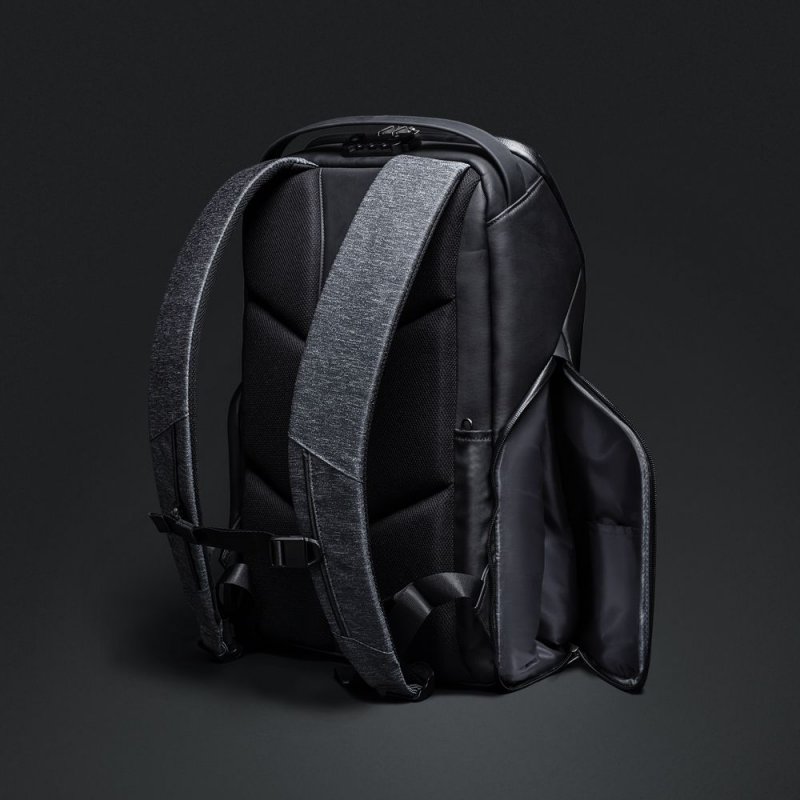 В конструкции рюкзака все продумано до мелочей: от комбинации высокопрочных, устойчивых к порезам и трению водоотталкивающих материалов до специального кармана для аккумулятора, в который выведен USB-кабель, соединенный с портом на внешней стороне рюкзака для легкого подключения к смартфону. Рюкзак закрывается на водонепроницаемую молнию, которую можно зафиксировать с помощью кодового замка.
