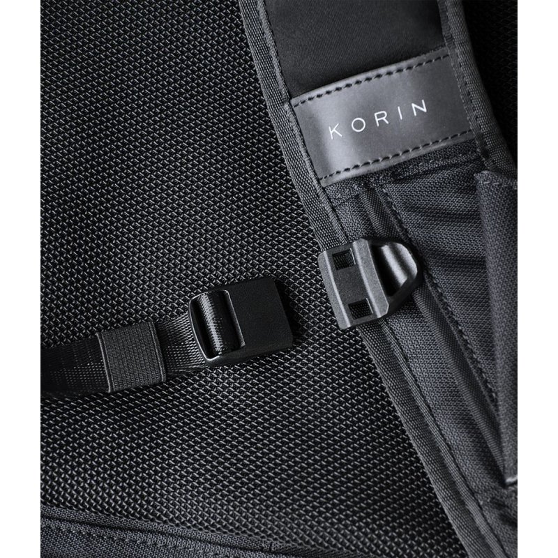 - Анатомическая конструкция рюкзака вместе с широкими лямками и поперечным ремнем на магнитной пряжке перераспределяют часть нагрузки с плеч и спины на талию и бедра, в результате чего вес рюкзака воспринимается на 20-25% легче, чем при использовании стандартных моделей