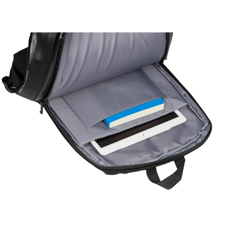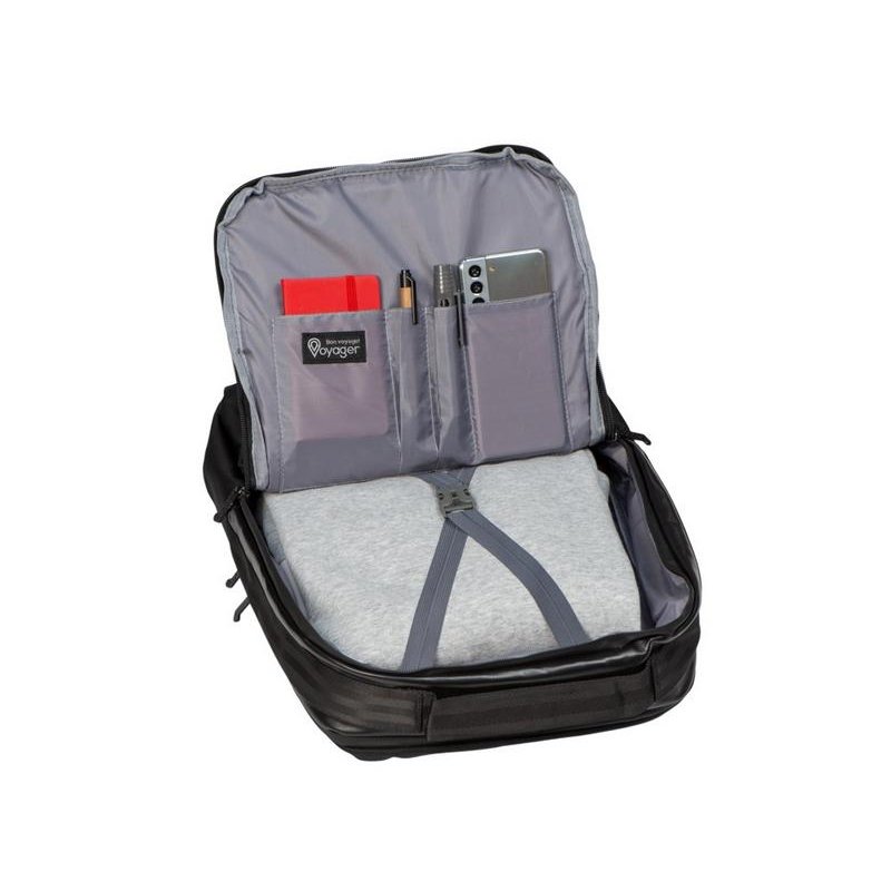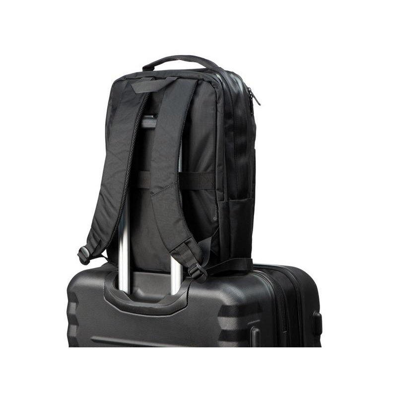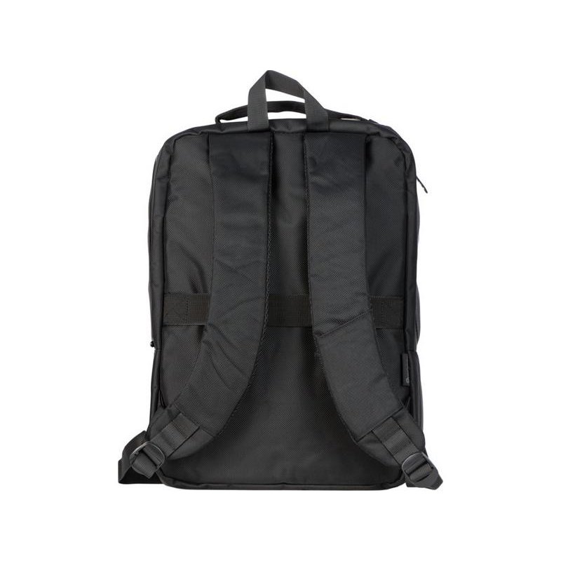 Удобный бизнес-рюкзак для передвижения по городу и деловых поездок состоит из отделения для ноутбука и планшета, большого отделения для одежды с фиксирующими ремнями, 2х наружных карманов на молнии спереди. Конструкция рюкзака продумана до мелочей: внутри большого отделения расположен органайзер для гаджетов и проводов, на спинке есть ремень для крепления на ручку чемодана и регулирующиеся по длине лямки, на лямке- карман для карт или ключей. Водостойкий материал и молнии. В комплекте мешок из спанбонда для хранения и металлический шильд под ваш логотип.