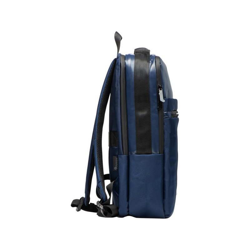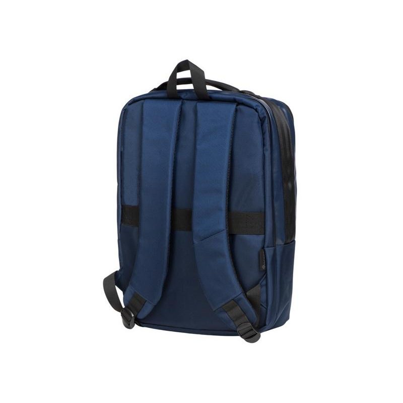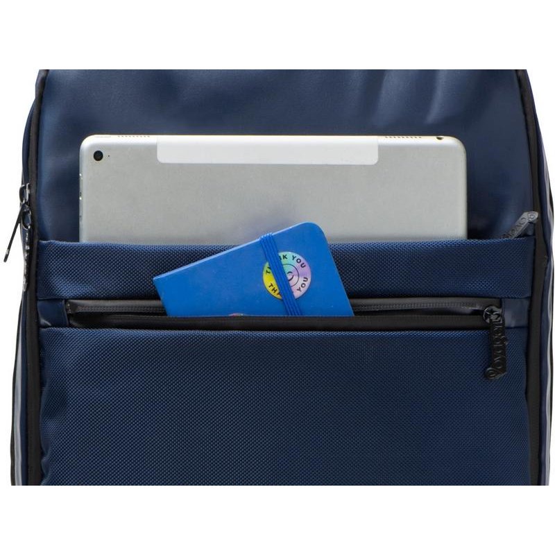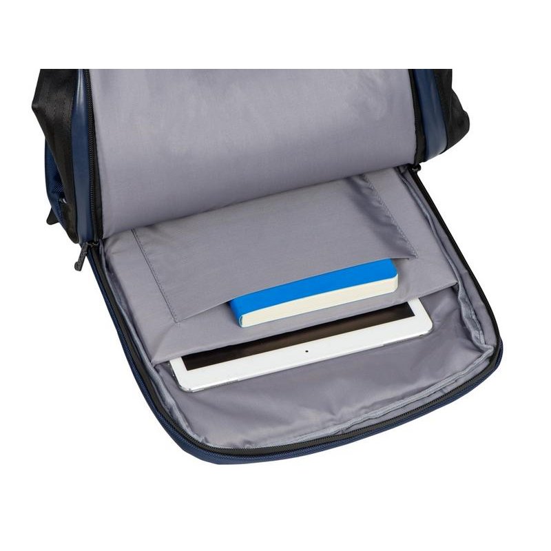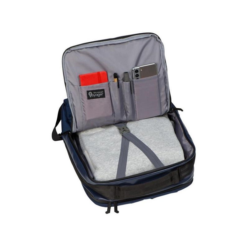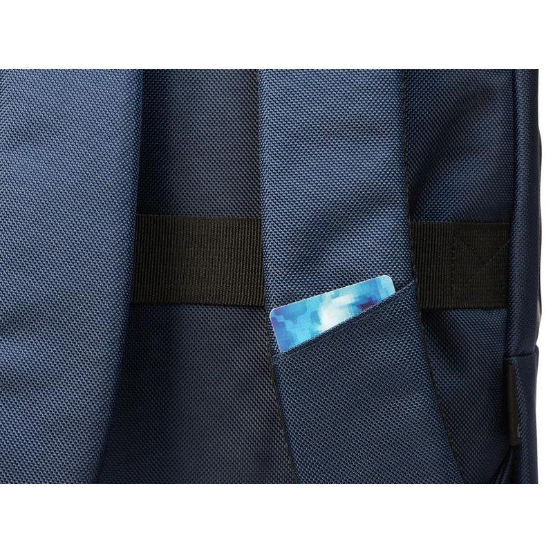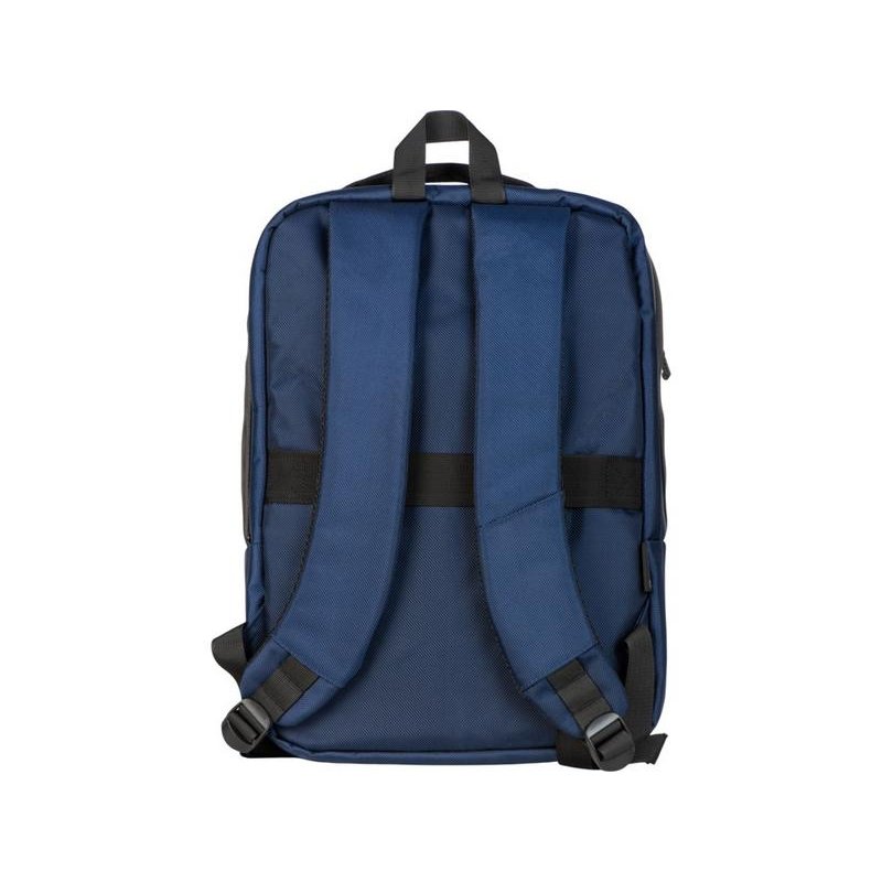 Удобный бизнес-рюкзак для передвижения по городу и деловых поездок состоит из отделения для ноутбука и планшета, большого отделения для одежды с фиксирующими ремнями, 2х наружных карманов на молнии спереди. Конструкция рюкзака продумана до мелочей: внутри большого отделения расположен органайзер для гаджетов и проводов, на спинке есть ремень для крепления на ручку чемодана и регулирующиеся по длине лямки, на лямке- карман для карт или ключей. Водостойкий материал и молнии. В комплекте мешок из спанбонда для хранения и металлический шильд под ваш логотип.