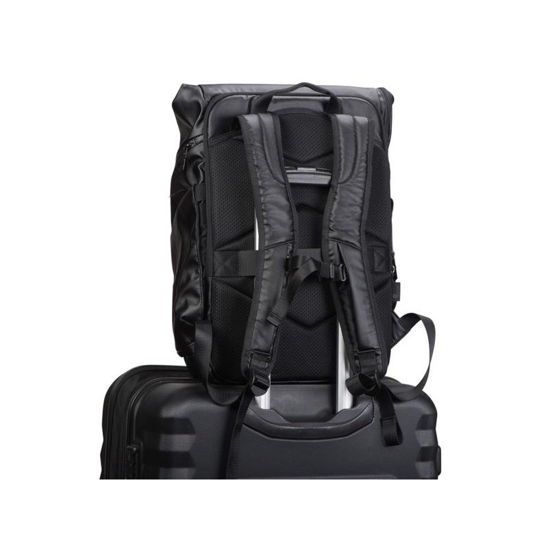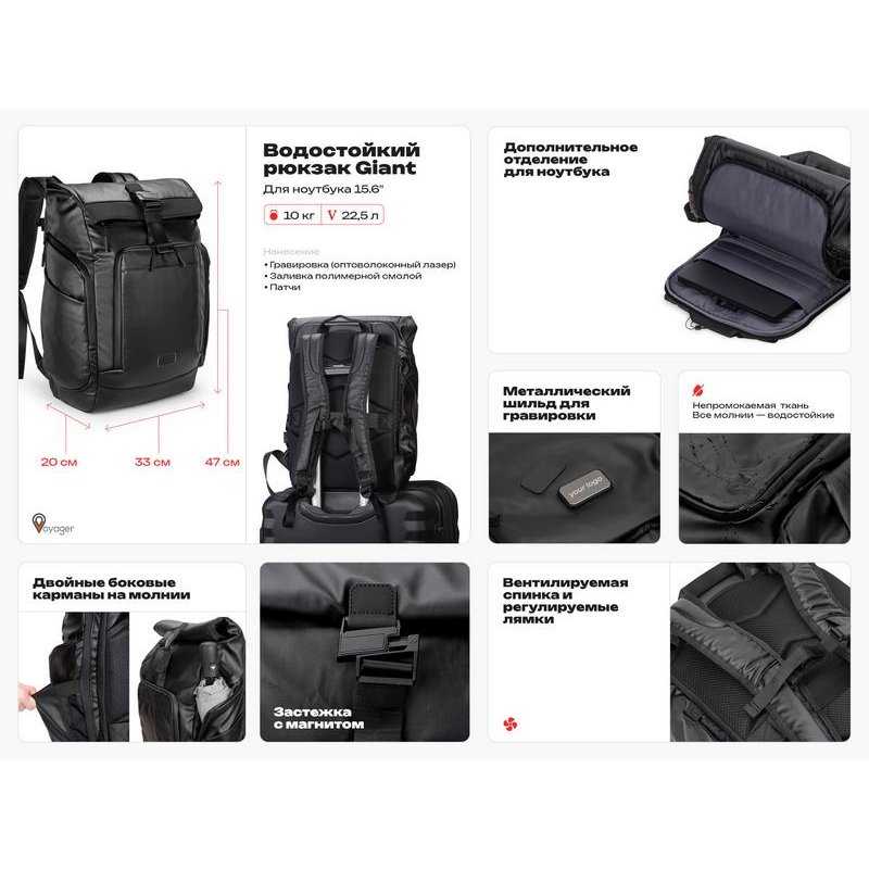 Большой вместительный рюкзак из непромокаемой ткани с водостойкими молниями снабжен множеством функций.