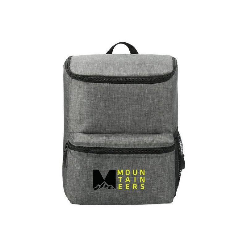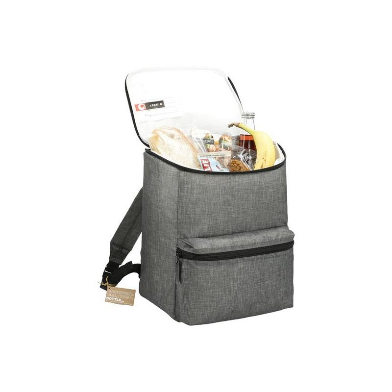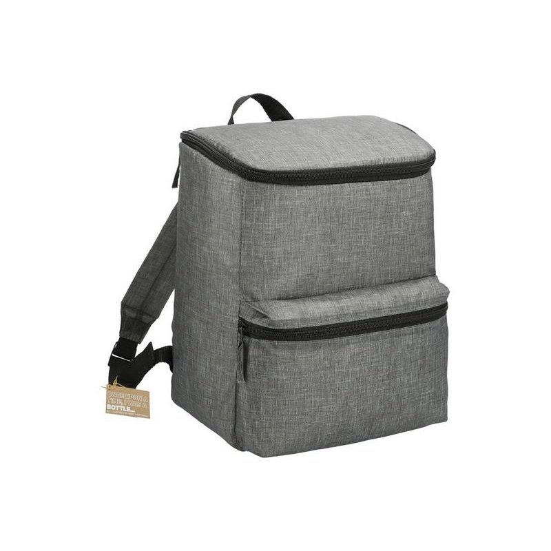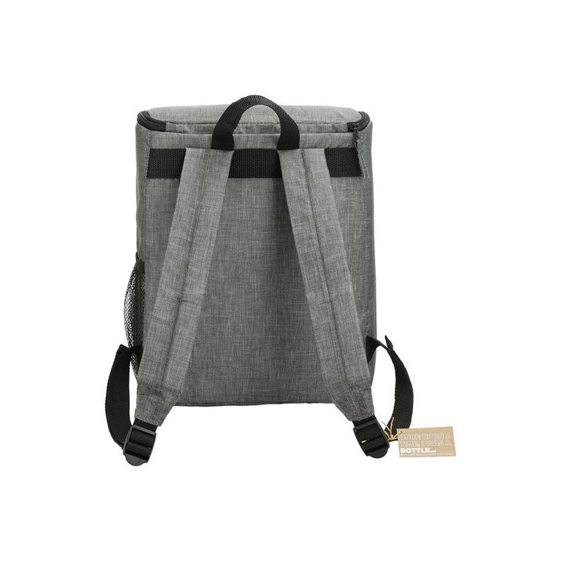 Рюкзак-холодильник из переработанного пластика вмещает 20 банок по 0,33 л. Спереди карман на молнии. Сбоку сетчатый карман. Лямки регулируются по длине.