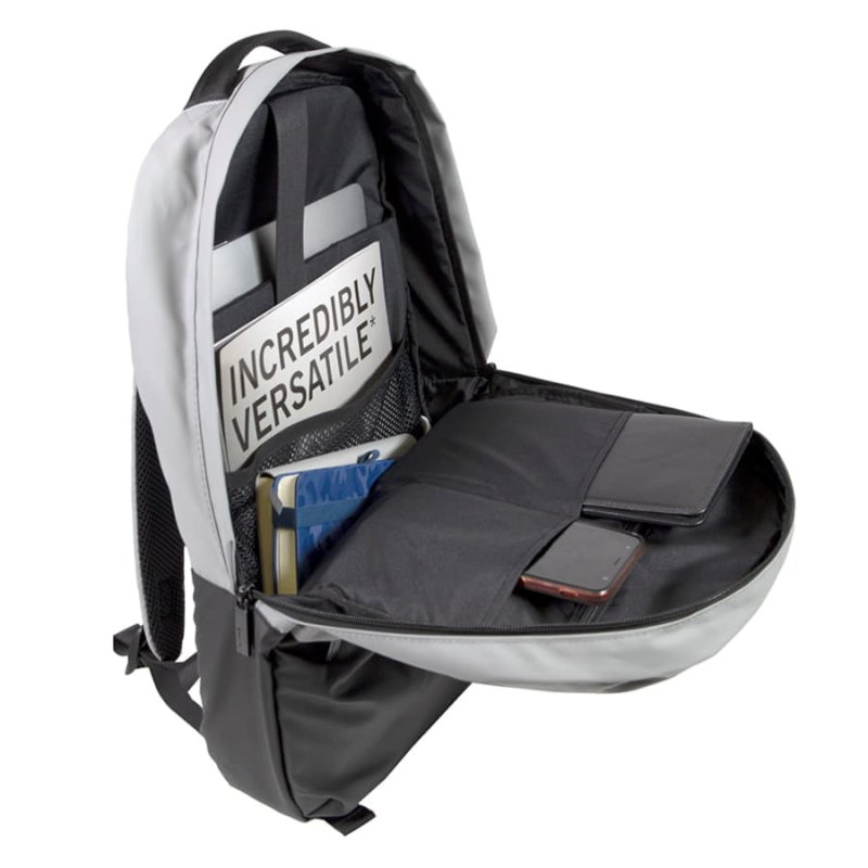 Основной цвет: близкий к Pantone 423 C, нижняя часть: цвет, близкий к Pantone 426 C· Основная ткань: 100% полиэстер c PU покрытием, подкладка: 100% полиэстер · Объём: 13литров · Вмещает ноутбук 15,6"Описание: · Прочный и водоотталкивающий материал Anti-scratch · Основной отдел на молнии с двумя бегунками и планкой, защищающей от попадания влаги внутрь · Внешний удобный карман -органайзер на молнии · Внутри укрепленный отдел для ноутбука с защитной тесьмой на липучке · Дополнительные карманы для хранения документов · Эргономичные лямки· Укрепленная ручка рюкзака · Лямки прошиты дополнительными стропами в быстро изнашиваемых местах, которые можно отрегулировать по длине и зафиксировать пластиковыми крепежами · Брендированные металлические пуллеры BagFly· Жаккардовый логотип BagFly внутри · Картонный ярлык BagFly· Упаковка: прозрачный пакет