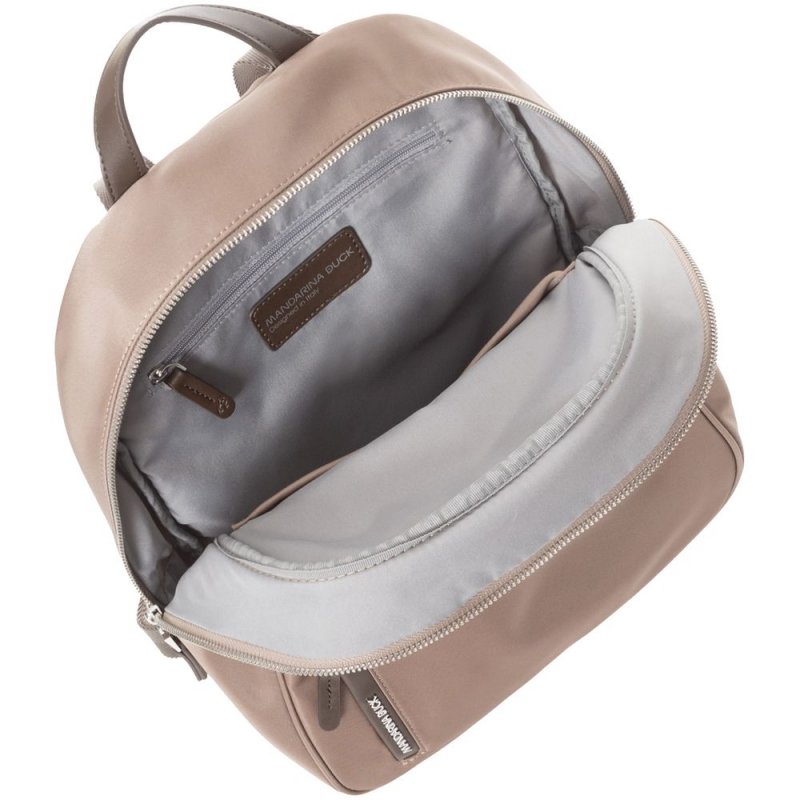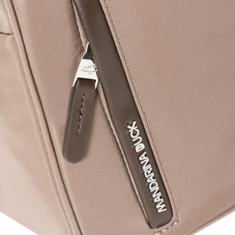 Изготовленный из гладкого влагостойкого нейлона, дополнен элементами из экокожи и металлизированным логотипом бренда.