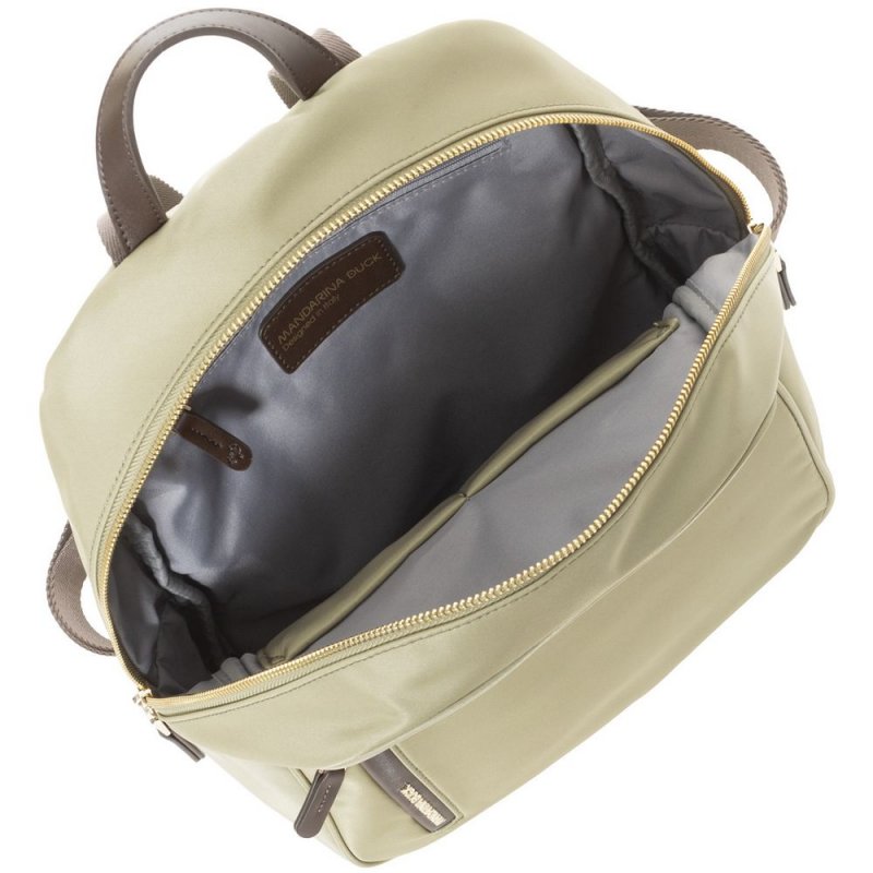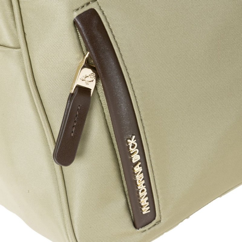 Изготовленный из гладкого влагостойкого нейлона, дополнен элементами из экокожи и металлизированным логотипом бренда.