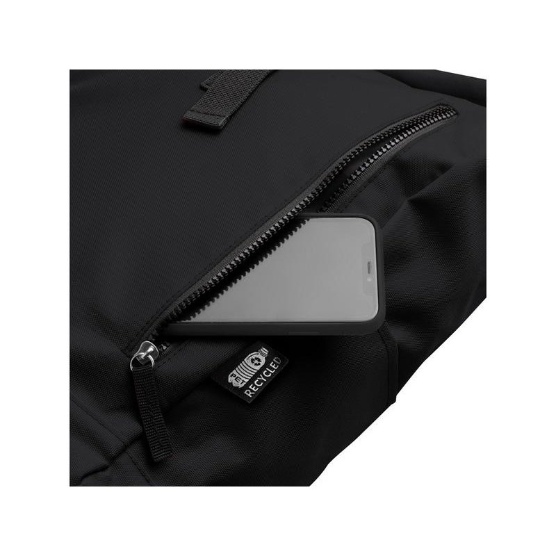 Рюкзак из полиэстера RPET. Основное вместительное отделение с широким отверстием. Внешний карман на молнии и два боковых кармана. Мягкие сетчатые плечевые ремни и спинка.