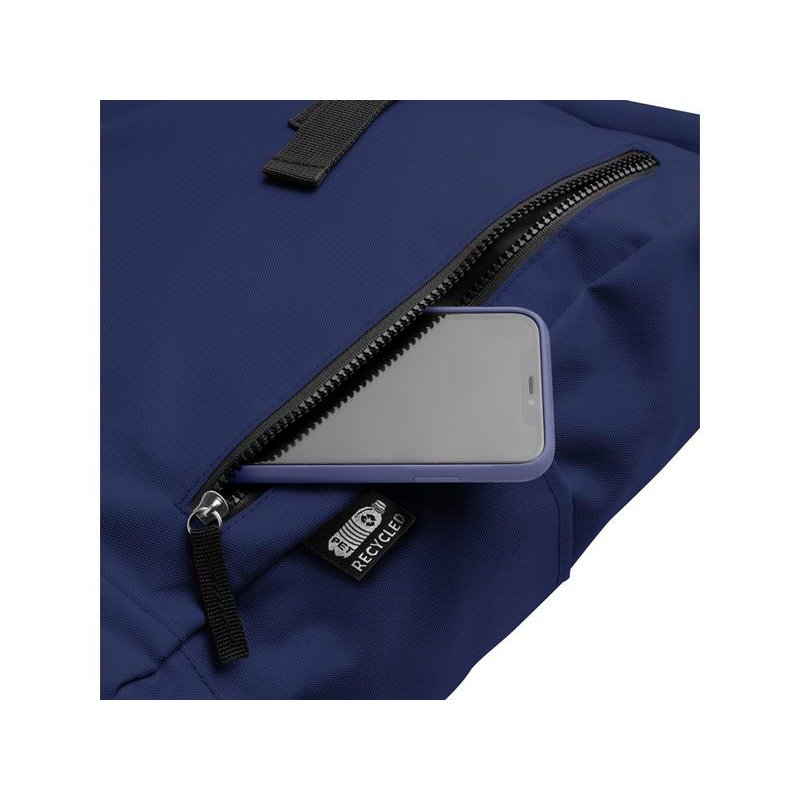 Рюкзак из полиэстера RPET. Основное вместительное отделение с широким отверстием. Внешний карман на молнии и два боковых кармана. Мягкие сетчатые плечевые ремни и спинка.