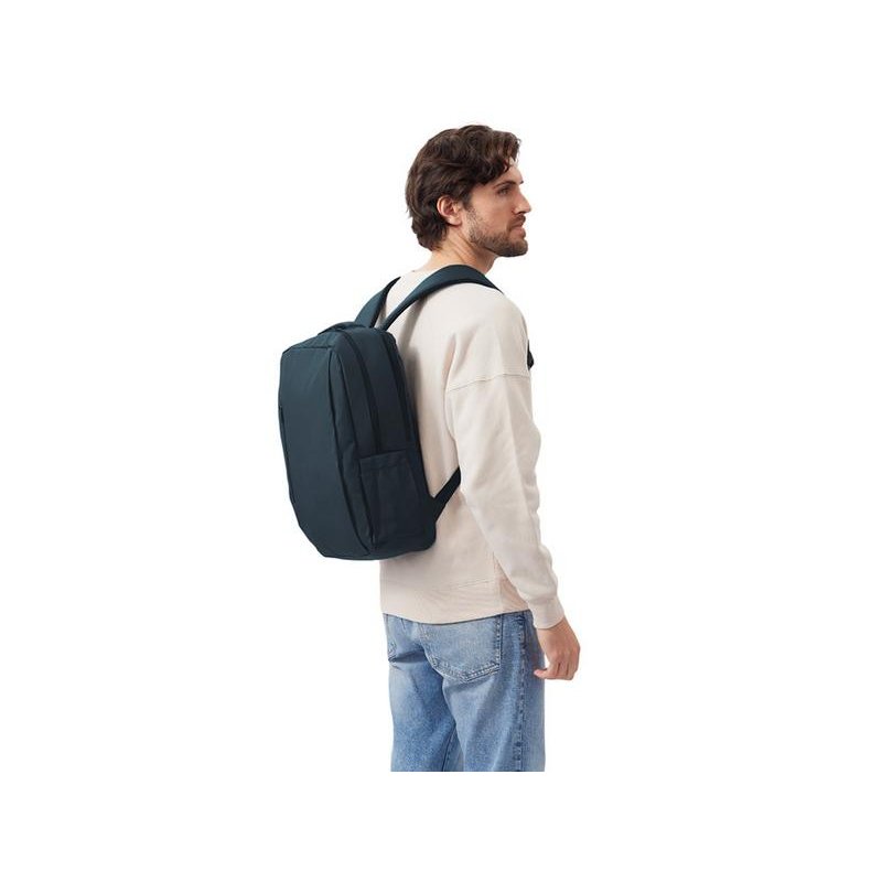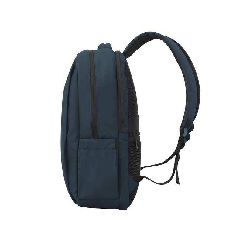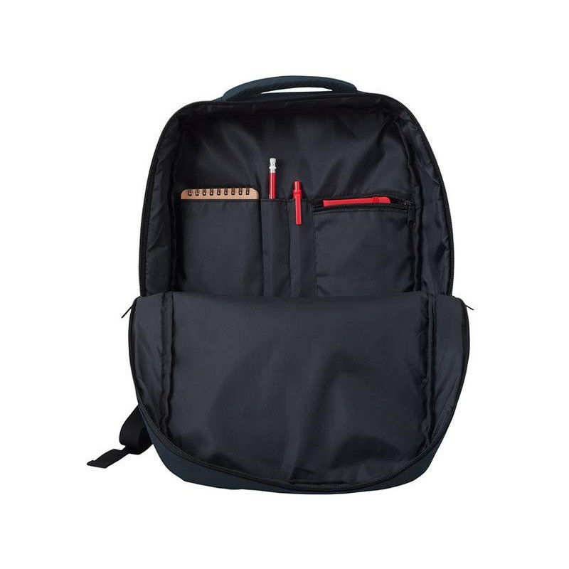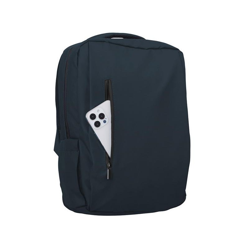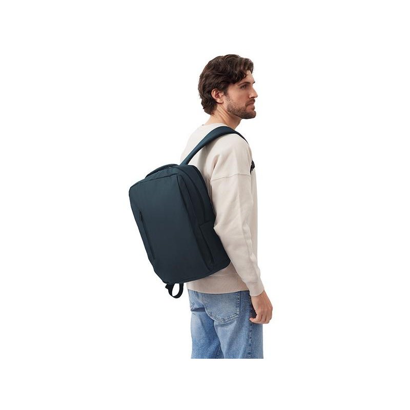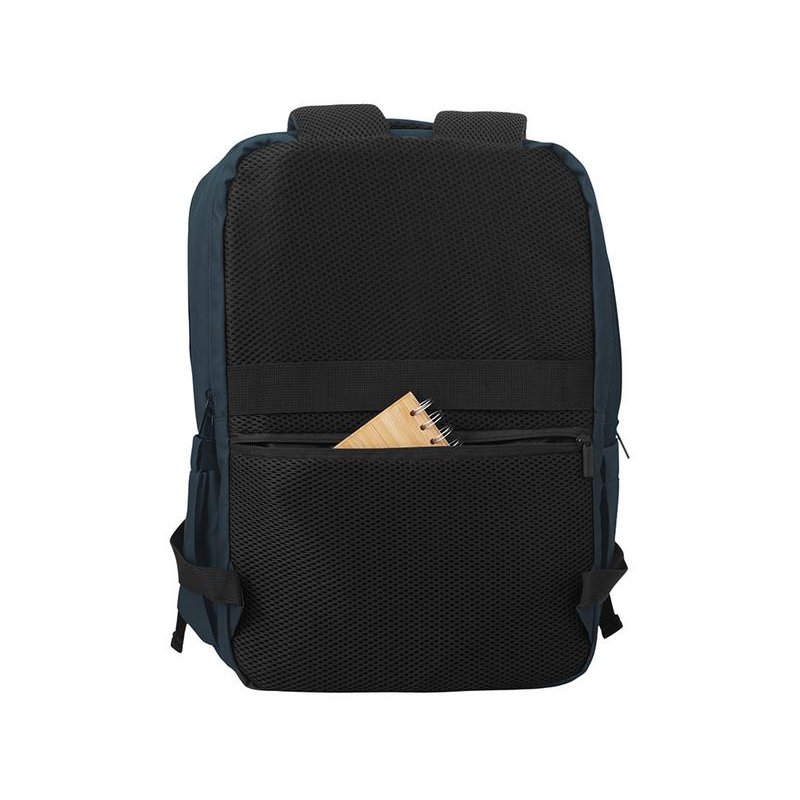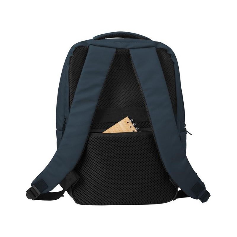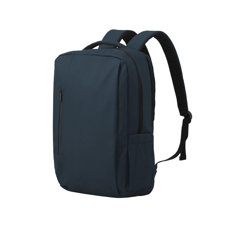 Непромокаемый бизнес рюкзак с двумя вместительными отделениями и карманом на молнии спереди. В одном отделении расположены карман для ноутбука и планшета, в другом органайзер и много пространства для одежды и других вещей на случай деловой поездки. На сетчатой спинке расположен потайной кармана на молнии для документов и личных вещей и ремень для крепления на ручку чемодана. Сверху удобная мягкая ручка для переноски. Лямки регулируются по длине.