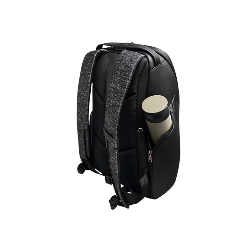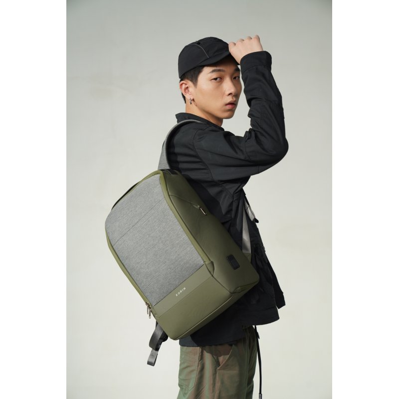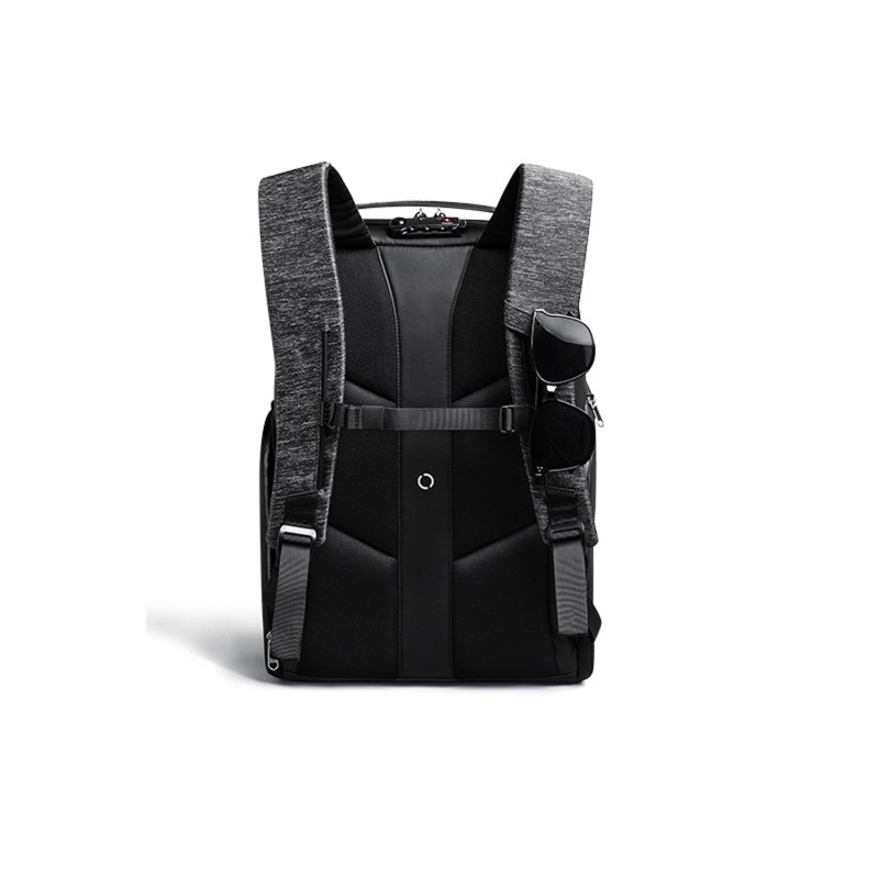 Вместительный водозащищенный рюкзак FlexPack Pro, обладатель премий iF Design Award 2019, Golden Pin Design Award, China Outstanding Industrial Design (CEID) Award, Governor Cup Industrial Design Excellence Award. Сделан из комбинации высокопрочных устойчивого к порезам и трению водоотталкивающих материалов: полиэстера и ткани многослойного плетения разных типов (нейлон, полиэстер и стекловолокно) черного и темно-серого цветов. Не требует специального ухода. Размер рюкзака 47х34х18 см, объем 18 л, вес 1330 гр. Рюкзак закрывается на водонепроницаемую молнию, которую можно зафиксировать с помощью кодового замка TSA007 с функцией таможенного досмотра. Конструкция рюкзака достаточно жесткая, не деформируется. Внутри рюкзака есть специальный карман, в который можно поместить powerbank, т к в него приходит USB-кабель (600 мм, 0,5-0,7 А, 5В), соединенный с портом на внешней стороне рюкзака для легкого подключения к смартфону. Это оригинальная запатентованная система зарядки K EasyCharging 1.0 с помощью USB-порта, расположенного в борту рюкзака, и кабеля, идущего к powerbank, что делает мобильную зарядку более удобной. По бокам рюкзака расположены 2 easy access кармана размером 22х12 см на водонепроницаемых молниях для термокружки, бутылки с водой, зонта, смартфона или других относительно небольших предметов. Детально продуманная организация отделений позволяет грамотно распределить вес. Самые тяжелые предметы располагаются ближе к спине, например, в отделении с мягким покрытием для ноутбука диагональю до 15,6”. Ноутбук надежно фиксируется и не перемещается при ходьбе. Внутри рюкзака есть 5 дополнительных карманов на молниях: 3 кармана 15-17х21-26 см и 2 боковых кармана с отделениями для телефона и мелочей 11,5х20 см. Специальная анатомическая конструкция вентилируемых мягких спинки и лямок и дополнительная поперечная лямка на магнитной застежке снижает нагрузку на плечи и спину, вес рюкзака воспринимается на 20-25% легче, чем при использовании стандартных моделей рюкзаков. На лямке специальная петля для очков или наушников. Сверху рюкзака есть удобная ручка из высококачественной прочной резины, за которую его можно нести или зафиксировать на ручке чемодана. Рюкзак оснащен стальным тросом, которым можно обхватить неподвижный предмет и затем зафиксировать в кодовом замке.