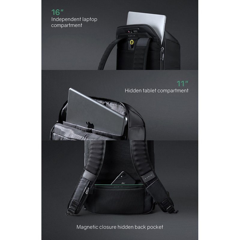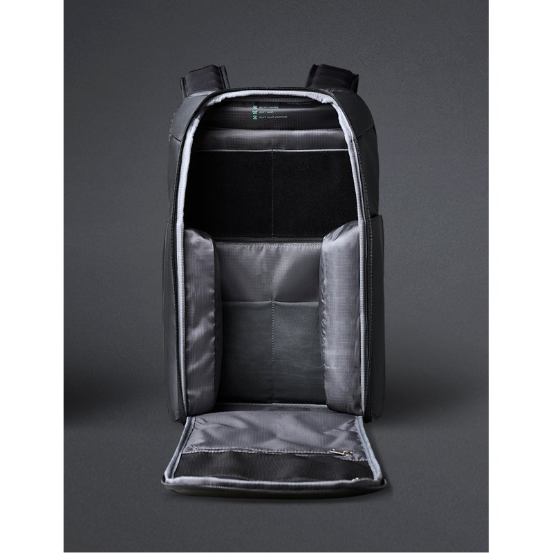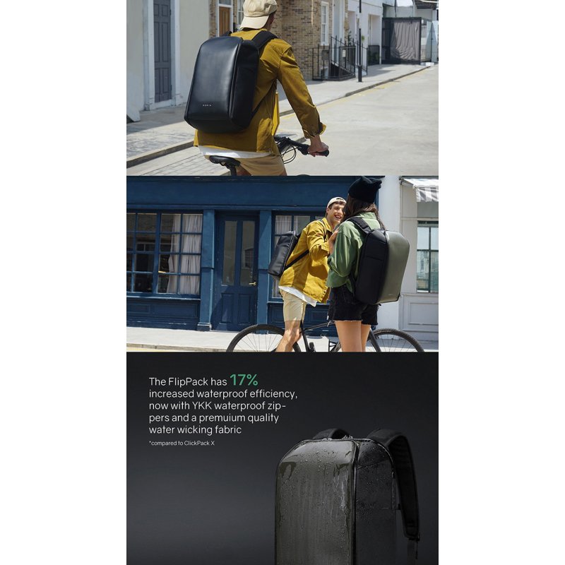 Складной рюкзак FlipPack черного цвета. Размер рюкзака 47х30х17 см, объем 23 л, вес 1350 гр. Молнии рюкзака полностью расстегиваются, и его можно сложить в плоскую конструкцию размером 50х30х6,5 см. Рюкзак трехслойный: верхний слой - прочный водоотталкивающий полиэстер (искусственная кожа), слой вспененного материала и слой мягкой подкладочной ткани. Такая конструкция надежно защищает находящиеся внутри рюкзака предметы от воды, деформаций и других внешних воздействий. Детально продуманная организация отделений позволяет грамотно распределить вес. Самые тяжелые предметы располагаются ближе к спине, например, в отделении для ноутбука диагональю до 16” с дополнительным карманом размером 26х14 см для планшета диагональю до 11”. Благодаря плотным перегородкам ноутбук и планшет надежно фиксируются и не перемещаются при ходьбе. Отделение закрывается на водонепроницаемую молнию YKK, которую можно зафиксировать с помощью кодового замка TSA007 с функцией таможенного досмотра. Основное отделение 44х27 см с семью карманами для мелочей. На спинке 4 открытых кармана (2 - 11,5х13,5 см и 2 - 15,5х13,5 см) и один 15,5х19 см на молнии. На откидной передней части еще 2 кармана на молниях 12х15 см и 13х15,5 см. Отделение закрывается на водонепроницаемую молнию YKK. По бокам рюкзака расположены 2 водозащищенных easy access кармана с крышками на сильных магнитах. Один карман размером 27х13х6,5 см c дополнительной специальной водозащитой для термокружки, бутылки с водой или зонта. Второй карман размером 27х13х5 см для мелкой электроники с дополнительной регулируемой мягкой перегородкой на липучке. Вентилируемая мягкая спинка из специальной устойчивой к разрыву ткани с easy access карманом для телефона или портмоне 10х20,5 см с магнитной застежкой. Также на спинке находится специальная лямка для крепления рюкзака на выдвижную ручку чемодана, ручка, за которую при необходимости удобно нести рюкзак в руках, и трос, которым можно обхватить неподвижный предмет и затем фиксировать бегунком молнии в кодовом замке. Трос выдерживает нагрузку до 50 кг. Широкие мягкие лямки рюкзака из дышащей ткани с удобной новой системой регулировки и фиксации пряжек в купе с поперечным ремнем на магнитной пряжке и анатомической конструкцией рюкзака перераспределяют часть нагрузки с плечей и спины на талию и бедра, в результате чего вес рюкзака воспринимается на 20-25% легче, чем при использовании стандартных моделей. Дополнительно на лямках расположен easy access карман с RFID-защитой для кредитной карточки и петельки, за которые можно прицепить очки или проводные наушники.