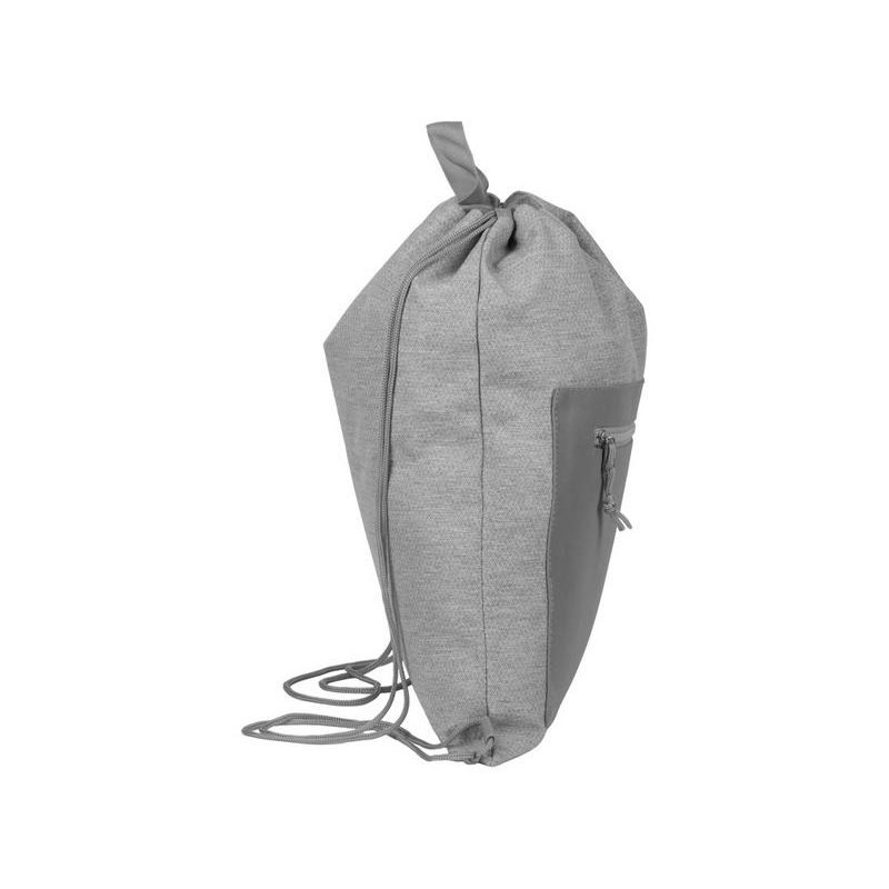Прочный стильный рюкзак-мешок для ваших вещей из плотной текстурнойткани. Спередикарман на молнии со вставкой из экокожи. Вверху ручка для переноски или подвешивания.