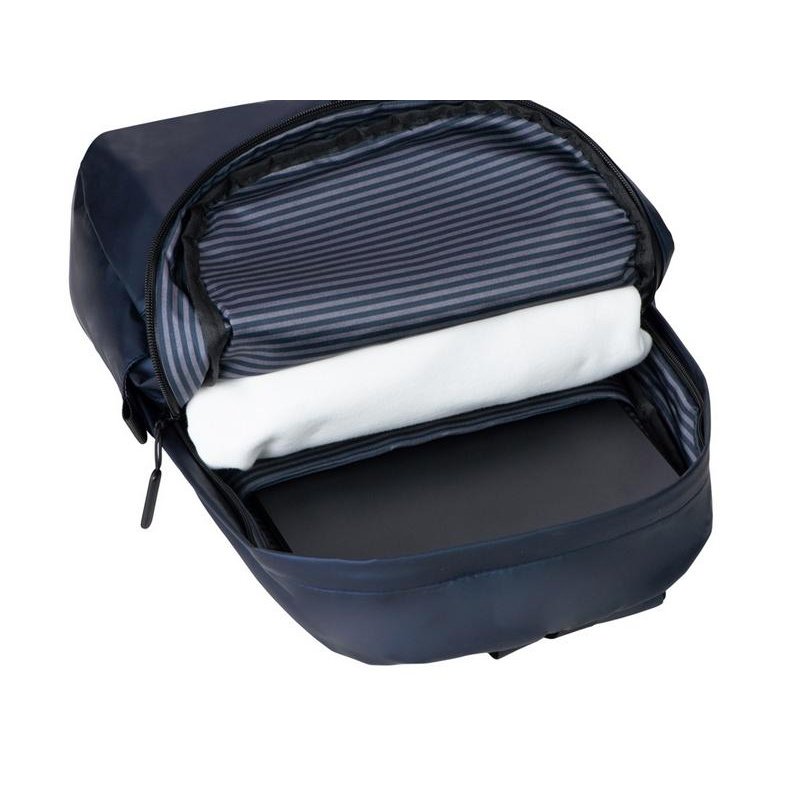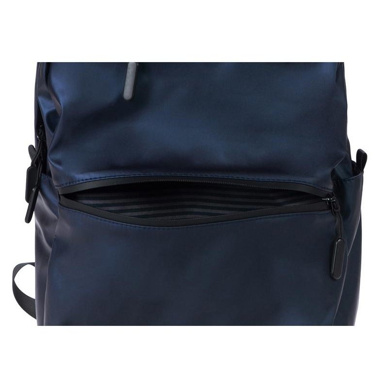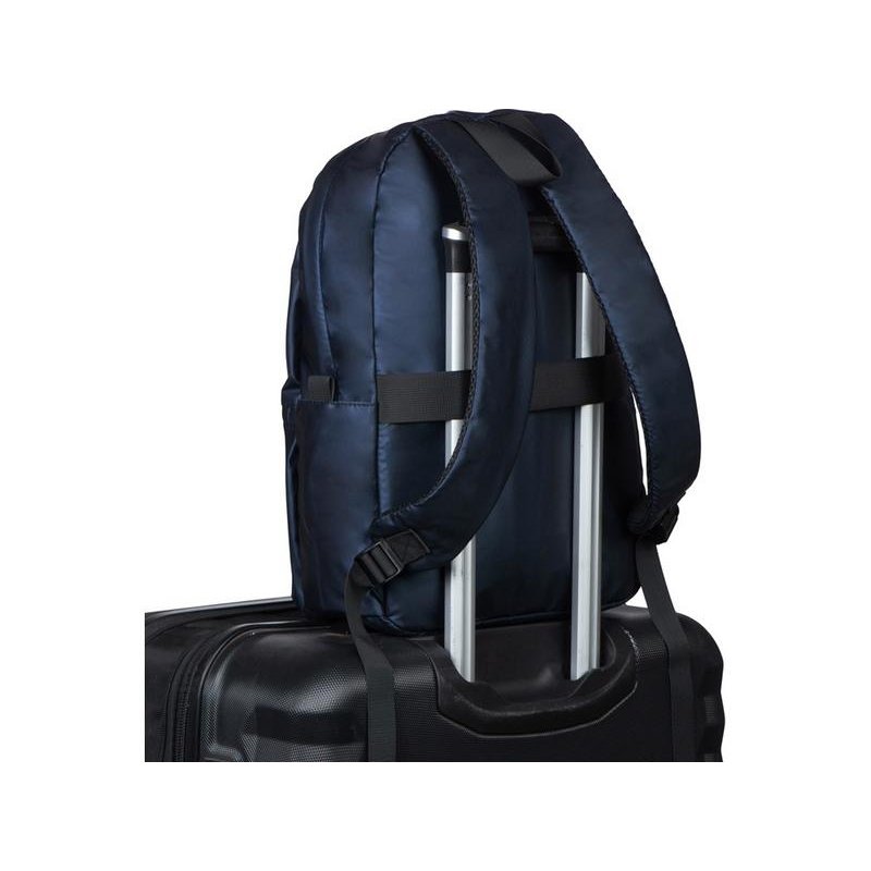 Элегантный легкий городской рюкзак из мягкого приятного на ощупь материала можно использовать для передвижений по городу, а так же в поездках, для чего на спинке предусмотрен ремень для крепления на ручку чемодана. Для удобства и компактного хранения содержимого снаружи расположены 2 передних кармана на молниях и 2 боковых кармана. Внутри уплотненный карман для ноутбука. Стильная подкладка в полоскув тон цвета внешнего материала делает рюкзак модным аксессуаром. Благодаря водостойкому материалу и молниям содержимое рюкзака не намокнет под дождем. Лямки регулируются по длине.