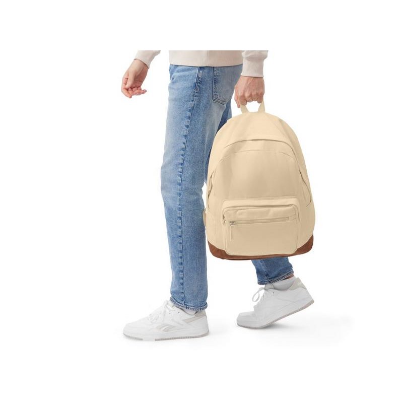 Уникальный легкий рюкзак из плотного хлопка выглядит стильно и элегантно. Внутри отделение для ноутбука, снаружи двойной карман на молнии. Сбоку расположен карман для бутылки или зонта. Дно из эко замши легко моется. Лямки регулируются по длине.
