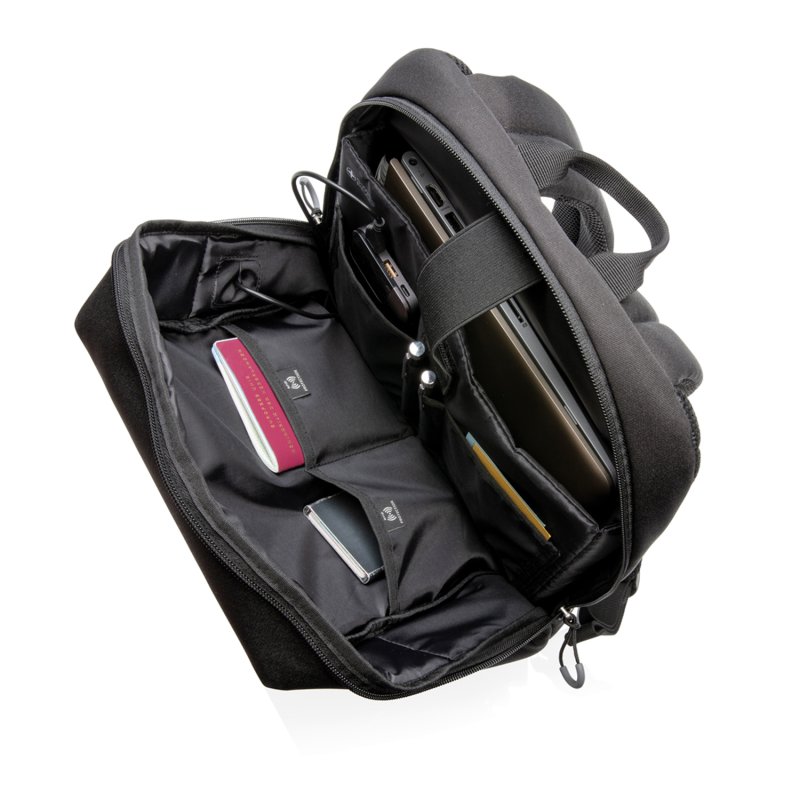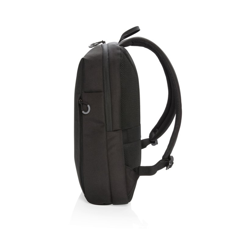 Рюкзак для ноутбука 15,6’’ — это стильное и экологичное решение для города, поездок и путешествий. В просторном основном отделении располагается мягкий карман для ноутбука, который защитит его от царапин и повреждений и несколько небольших кармашков для телефона, внешнего аккумулятора, зарядного устройства и других нужных мелочей. Снаружи есть боковой карман с RFID-защитой, которая не позволит злоумышленникам считать данные с паспорта и банковских карт. Дополнительное удобство обеспечивает встроенный порт USB-A: вы сможете зарядить телефон даже в поездке. Для безопасности по вечерам на переднюю часть рюкзака нанесена светоотражающая полоса. Рюкзак изготовлен из переработанных пластиковых бутылок и не содержит ПВХ. Для создания каждого рюкзака мы использовали 22 поллитровых пластиковых бутылки. Сертифицировано AWARE™. Наличие индикаторных частиц AWARE™ подтверждает, что мы действительно используем переработанные материалы. 2% с продажи каждой вещи, отмеченной сертификатом AWARE™, мы перечисляем в поддержку всемирной организации Water.org.