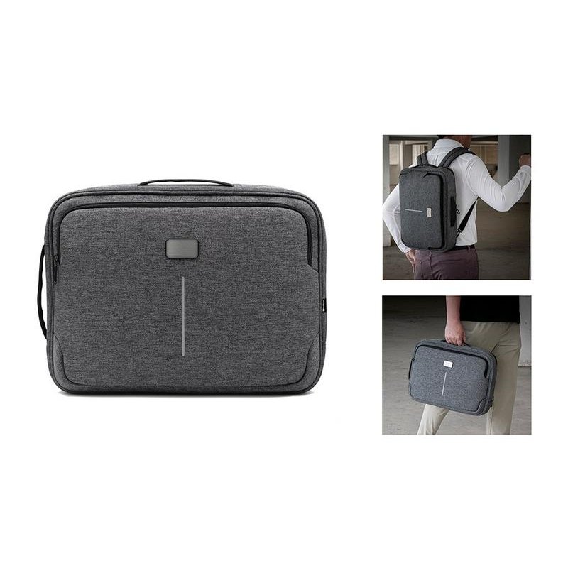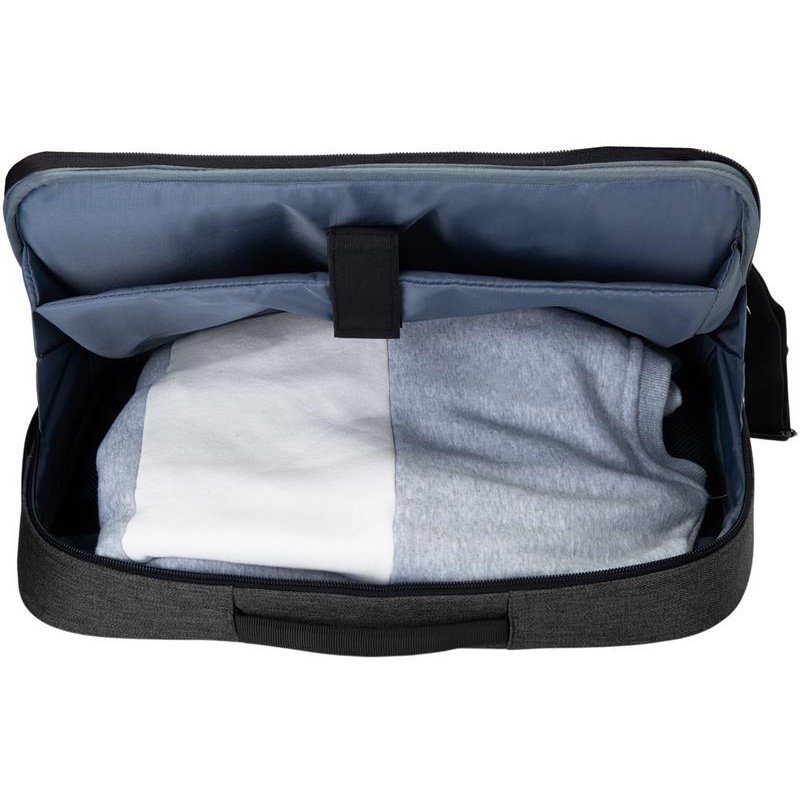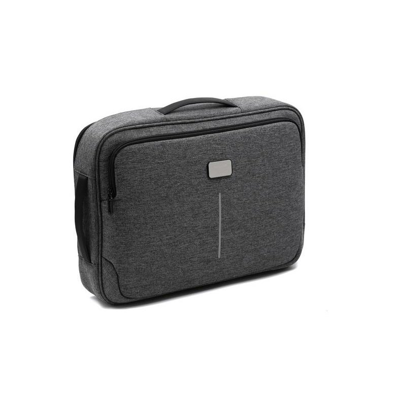 Рюкзак легко трансформируется в сумку для деловых поездок. Отстегивающиеся лямки можно спрятать в карман на молнии на спине. В комплекте 2 шильда под нанесение: металлический и из искусственной кожи.