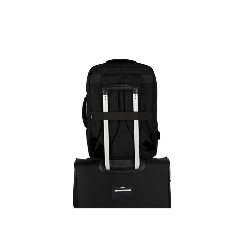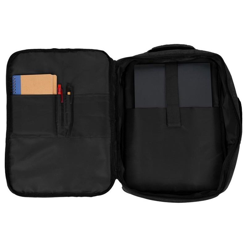 Легкий, удобный и вместительный в деловых поездках. Рюкзак трансформируется в деловую сумку благодаря второй ручке. Основное отделение с органайзером имеет глубину 11 см, чтопозволяет хранить в нем одежду и все необходимое для командировок. Для большего удобства рюкзак оснащен USB выходомиремнемдля крепления к чемодану. Лямки регулируются по длине.