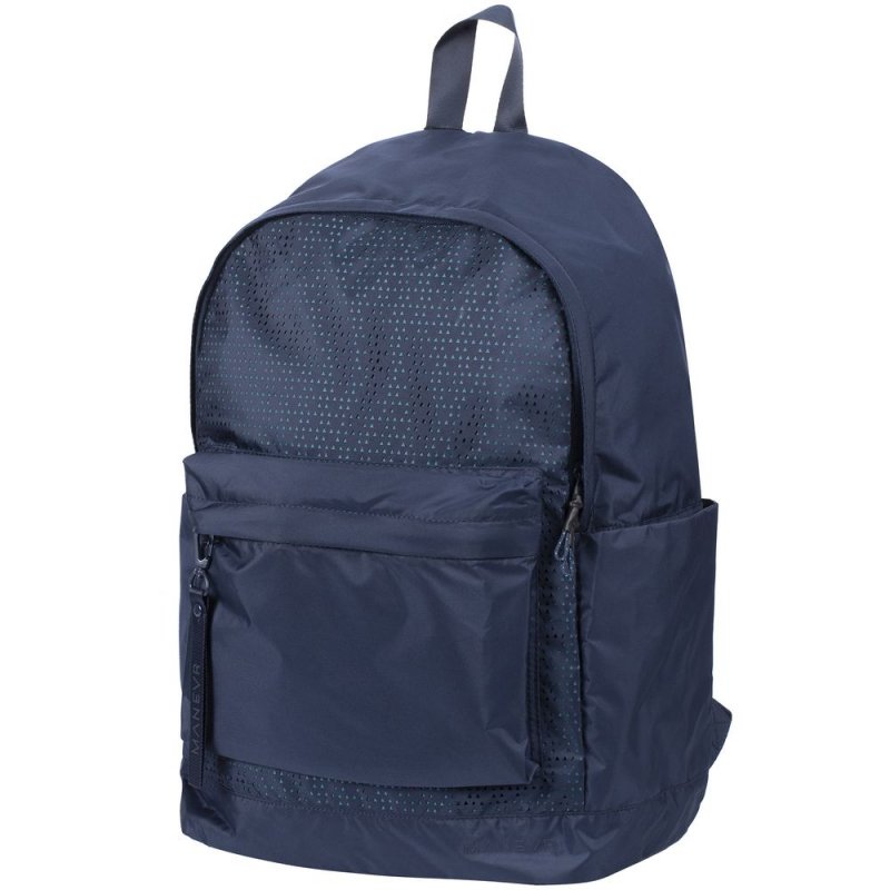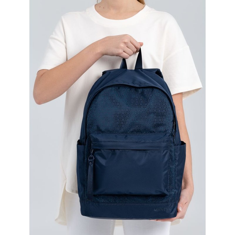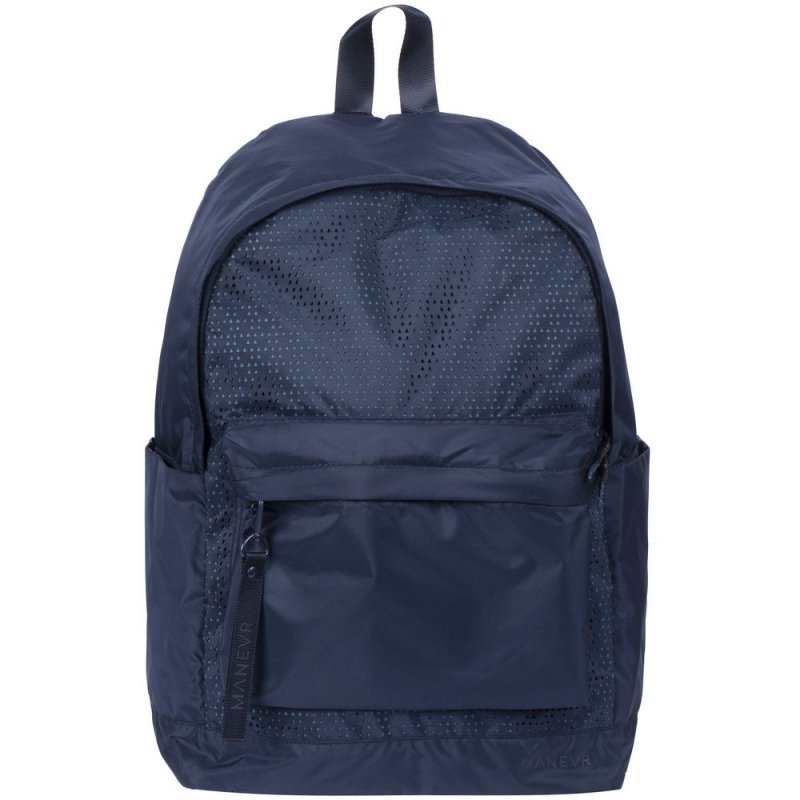 Цвет Outer Space лег в основу коллекции сумок Triangel, позволяя создать модное монохромное сочетание с изделиями Manevr темно-синего цвета. Изделия изготовлены из шелковистого полиэстера, в отделке использована лазерная перфорация паттерна.