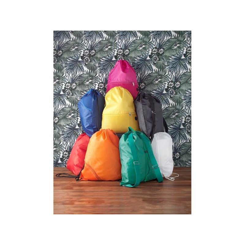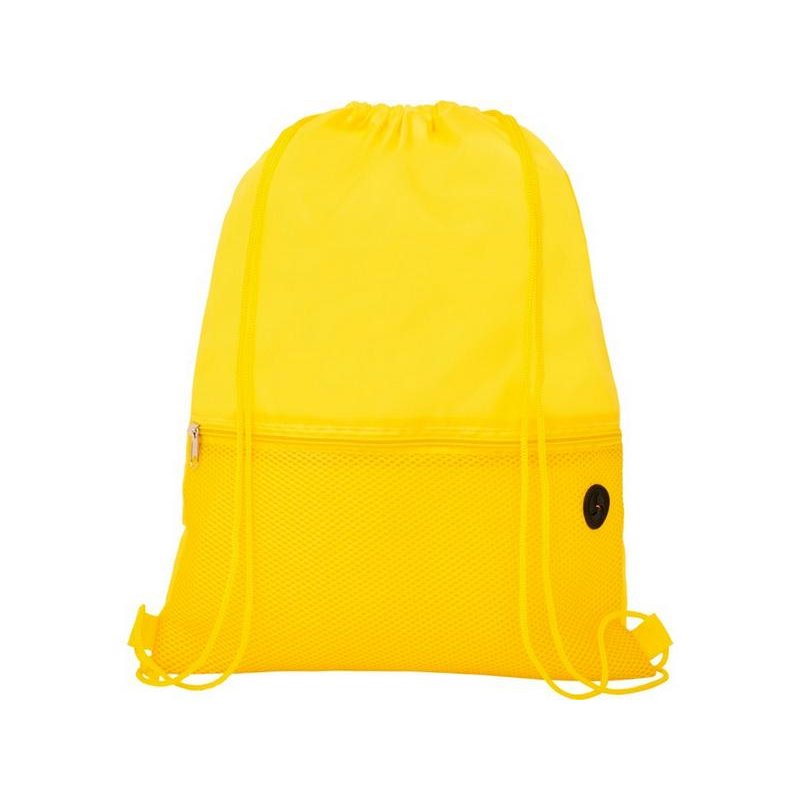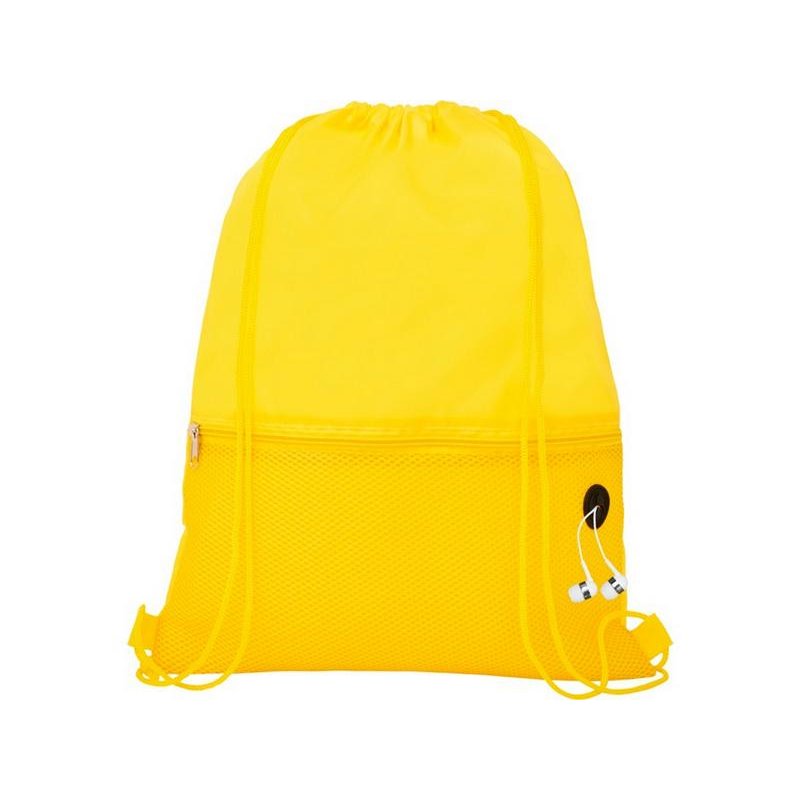 Рюкзак со шнурком и главным отделением на шнуровке в цвет изделия. Имеет один передний сетчатый карман на молнии и порт для наушников. Прочность до 5 кг.