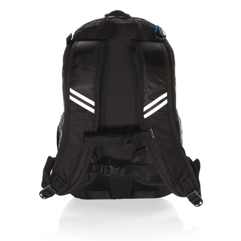 Спортивный рюкзак для бережного хранения ваших вещей. Сделан из прочной ткани, оснащен внутренними и внешними карманами, а также сетчатой спинкой для максимально удобного использования. В рюкзаке есть отделение для ноутбука диагональю до 15,4”. Специальный чехол защитит ваши вещи от дождя. Минималистичный спортивный дизайн с яркими деталями. Не содержит ПВХ.