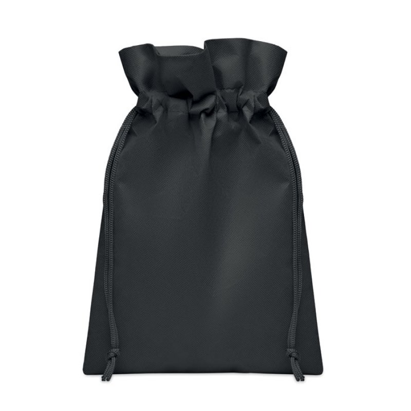Small gift draw cord bag in RPET non-woven 80 gr/m². Size approx. 20x30 cm.