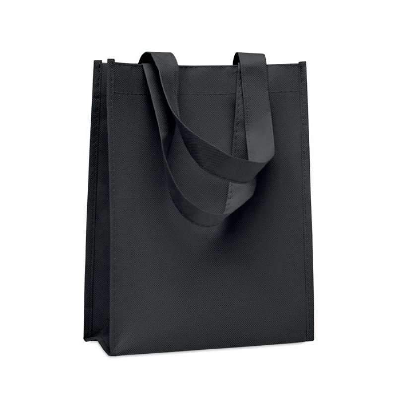 Small gift or goodie bag in RPET non-woven with short handles and gussets. 80 gr/m².