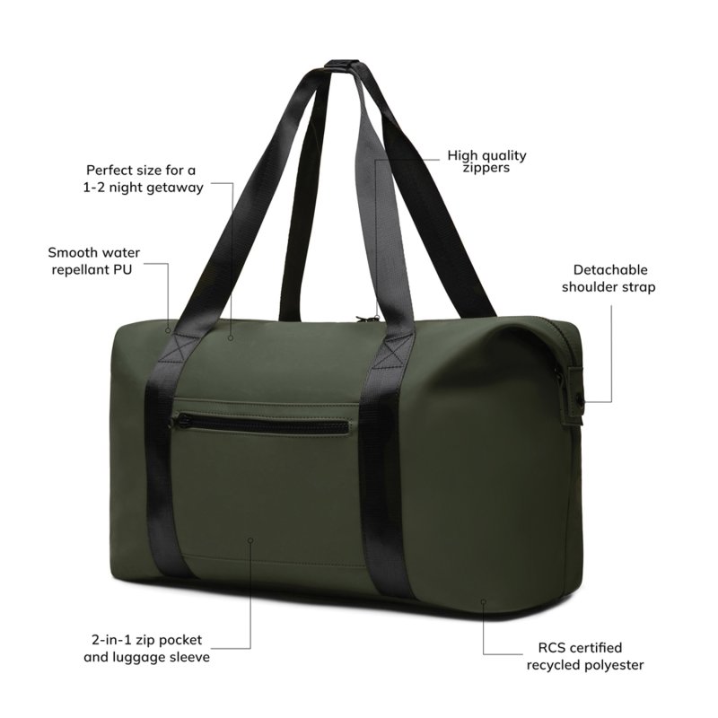 Дорожная сумка VINGA Baltimore идеально подойдет для коротких путешествий на 1-2 дня. Изготовлена из переработанного полиэстера, сертифицированного RCS, с гладким полиуретановым покрытием. Функцию багажного ремня выполняет внешний карман на молнии, благодаря которому сумку легко зафиксировать на ручке чемодана. Есть удобные лямки для переноски и съемный плечевой ремень, длина которого регулируется. Внутри вместительного основного отделения находится карман на молнии, куда вы можете спрятать самое ценное. Переработанный материал изделия сертифицирован RCS (Recycled Claim Standard). Сертификация RCS гарантирует, что вся цепочка поставок проверена и подтверждена. Содержание вторсырья: 20% от общего веса изделия.