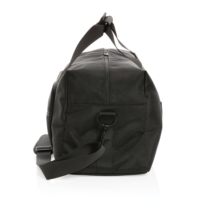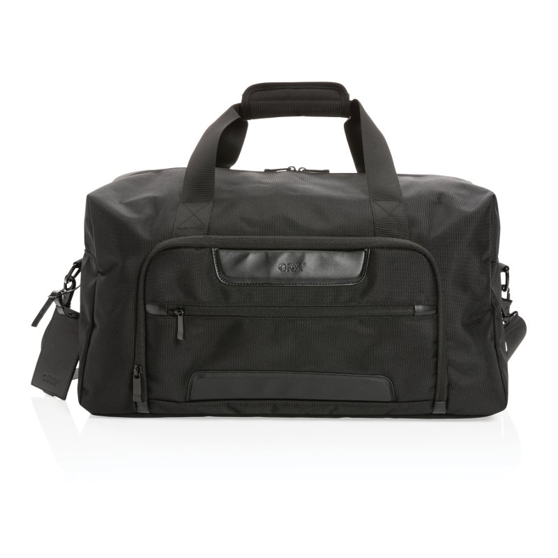 Дорожная сумка Swiss Peak Voyager изготовлена из прочного переработанного полиэстера 1680D с добавлением индикатора AWARE™. Декорирована деталями из полиуретана. Вместительное основное отделение и дополнительные внешние карманы на молнии. Для документов и банковских карт предусмотрена защита RFID, есть багажная бирка. Материал изделия: переработанный полиэстер 1680D. Подкладка: переработанный полиэстер 150D. Дорожная сумка произведена с использованием технологии AWARE™. Наличие индикатора в материале изделия гарантирует подлинность и экологичность производства. Каждая дорожная сумка Swiss Peak Voyager из RPET AWARE™ — это экономия 30,2 л воды в процессе производства и 50,7 переработанных пластиковых бутылок объемом 0,5 л. 2% с продаж всех изделий, содержащих индикатор AWARE™, будут перечислены в поддержку всемирной благотворительной организации Water.org.