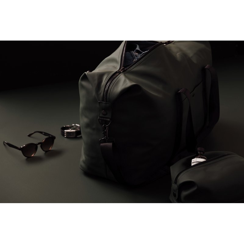 Стильная и вместительная дорожная сумка идеально подойдет для рабочей поездки или отпуска. Есть регулируемый ремешок. Оснащена карманом на молнии с одной стороны и небольшим карманом с кнопкой с другой. Изготовлена из водоотталкивающего материала, на ощупь похожего на нубук.