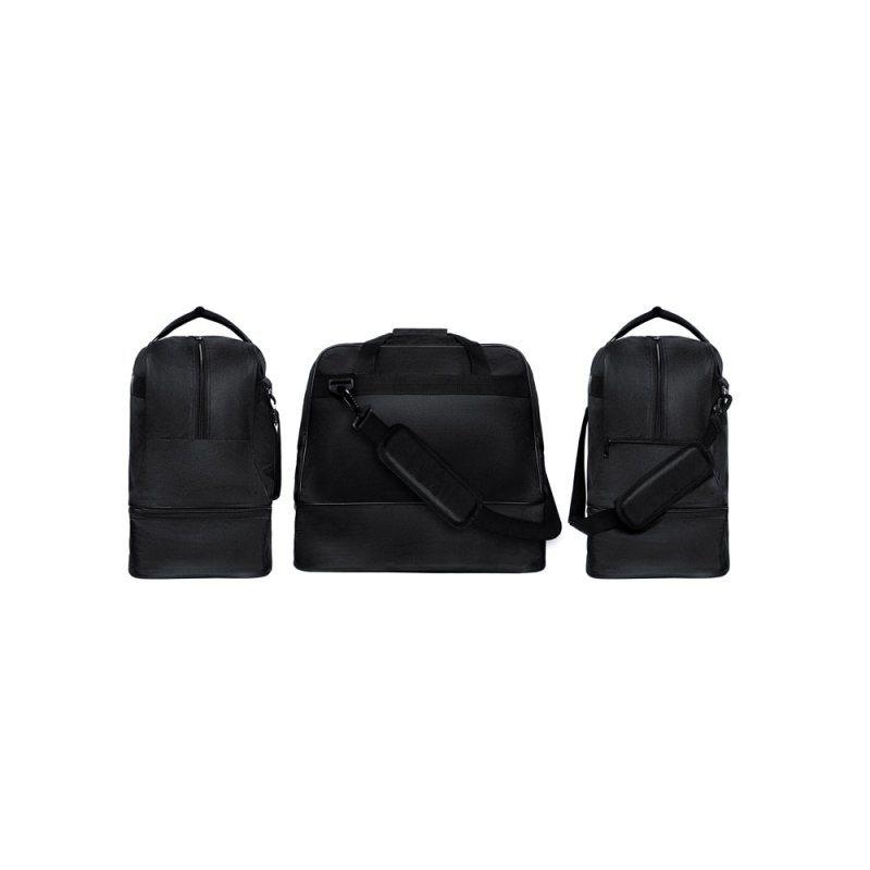 Спортивная сумка с двойной ручкой и длинным регулируемым ремнем для переноски. Основной карман с двойным бегунком. Отделение для обуви. Защита от влаги. Жесткое дно. Легкая очистка. Объем 53 литра.