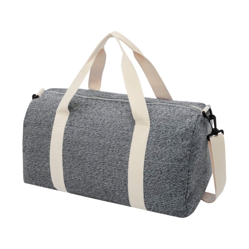 Спортивная сумка из переработанного хлопка и полиэстера с регулируемым плечевым ремнем. Вторичный хлопок изготавливается из отходов, предназначенных для потребления, которые производятся текстильными фабриками в процессе резки. Похожие цвета смешиваются вместе, поэтому дополнительная окраска не требуется. Из-за особенностей переработанного хлопка возможны незначительные отклонения в цвете. Благодаря этому сумка выглядит более аутентичной.
