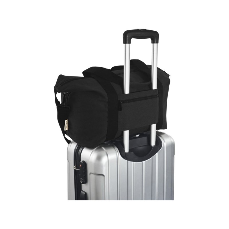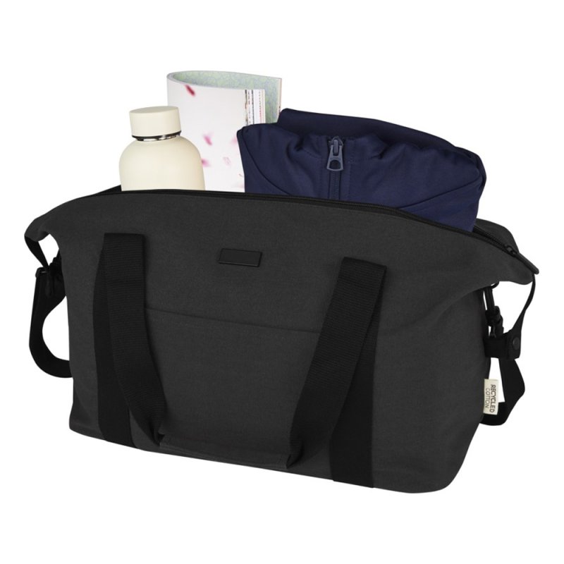 Изготовленная из высокопрочных экологичных материалов, брезента и подкладки из переработанного ПЭТ, соответствующих стандарту GRS, спортивная сумка Joey объемом 25 л имеет просторное главное отделение на молнии и внутренний карман на молнии для безопасного хранения. Сумка также имеет 1 открытый передний карман и еще один задний карман на ремне с застежкой на молнии для тележки, и может переноситься как с помощью усиленных вязаных ручек, так и с помощью отсоединяемого регулируемого ремня на плечо. Декоративная металлическая пластина может придать логотипу сияние благодаря утонченному матовому покрытию.