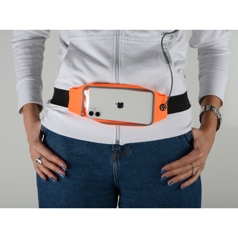 Сумка на пояс с отделением для смартфона размером до 16 х 8 см и выходом для наушников.