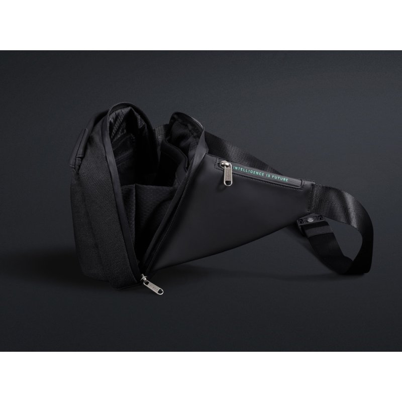 Сумка-слинг - модный и стильный аксессуар. Выполнена из антивандального материала, стойкого к порезам. Карман сверху закрывающийся на магнит. Карманы быстрого доступа к содержимому разработаны для большего удобства использования. Множество карманов внутри помогают аккуратно раскладывать содержимое. Потайной карман сзади на магните. Карман на молнии на лямке для карт и мелочей. Лямка на магнитной застежке. Карабин для ключей на ретракторе. Водостойкие материал и молнии. Сетчатая спинка. Поставляется в коробке с ручкой.