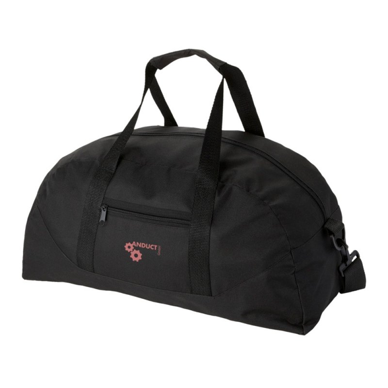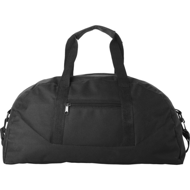 Основное и переднее отделение на молниях. Две усиленные ручки. Регулируемый плечевой ремень, максимальная длина 110 см.