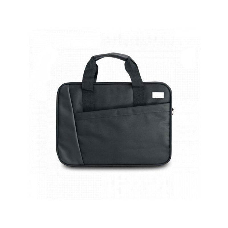 ANGLE LAPTOP. Сумка для ноутбука 15.6'', Черный. Сумка для ноутбука из искусственной кожи и полиэстера 1680D. Отделение с внутренней подкладкой и мягким отделением для ноутбука с диагональю до 15'6''. Передний и задний карманы. Регулируемый плечевой ремень с подкладкой. Ремень крепления к чемодану. Вид нанесения, рекомендуемый поставщиком: гравировка, трансфер, полимерная смола