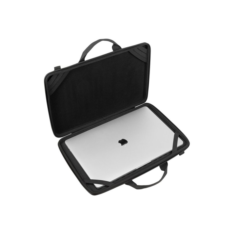 • Ноутбук надежно крепится внутри чехла специальными фиксирующими лентами по углам.