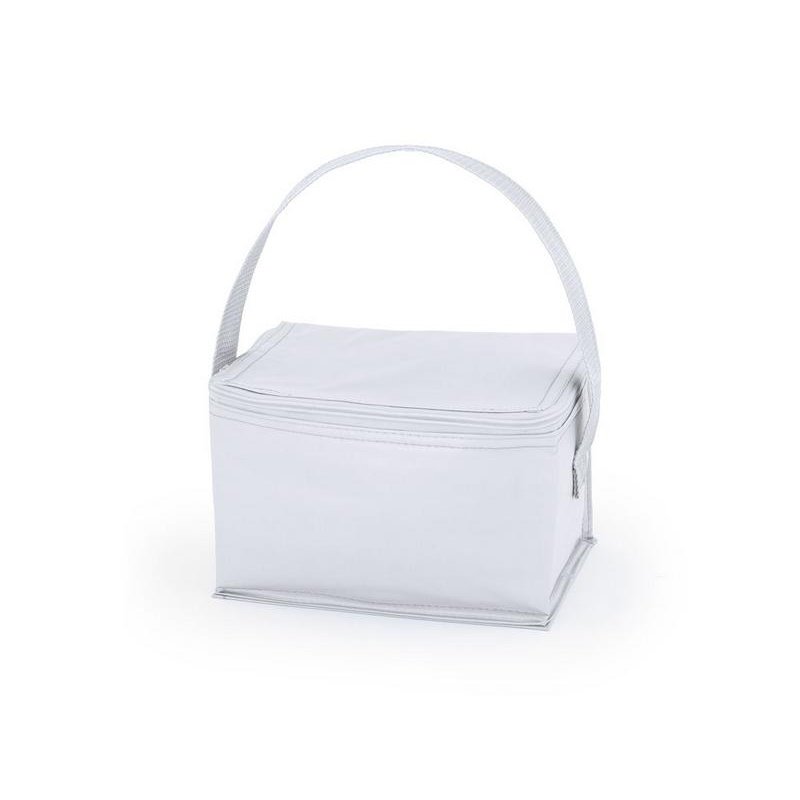 Сумка-холодильник с подкладкой из изотермического алюминия на 6 банок из ПВХ. Ручка для переноски и застежка-молния.