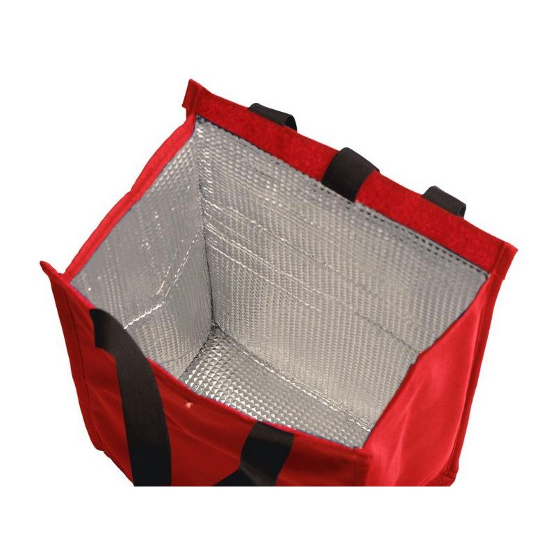Вместительная сумка-холодильник, в том числе подходящая для винных бутылок. Внутренняя подкладка из пены толщиной 2 мм. Закрывается на плотную липучку. Складывается и застегивается на кнопку. Удобные прочные ручки для переноски.