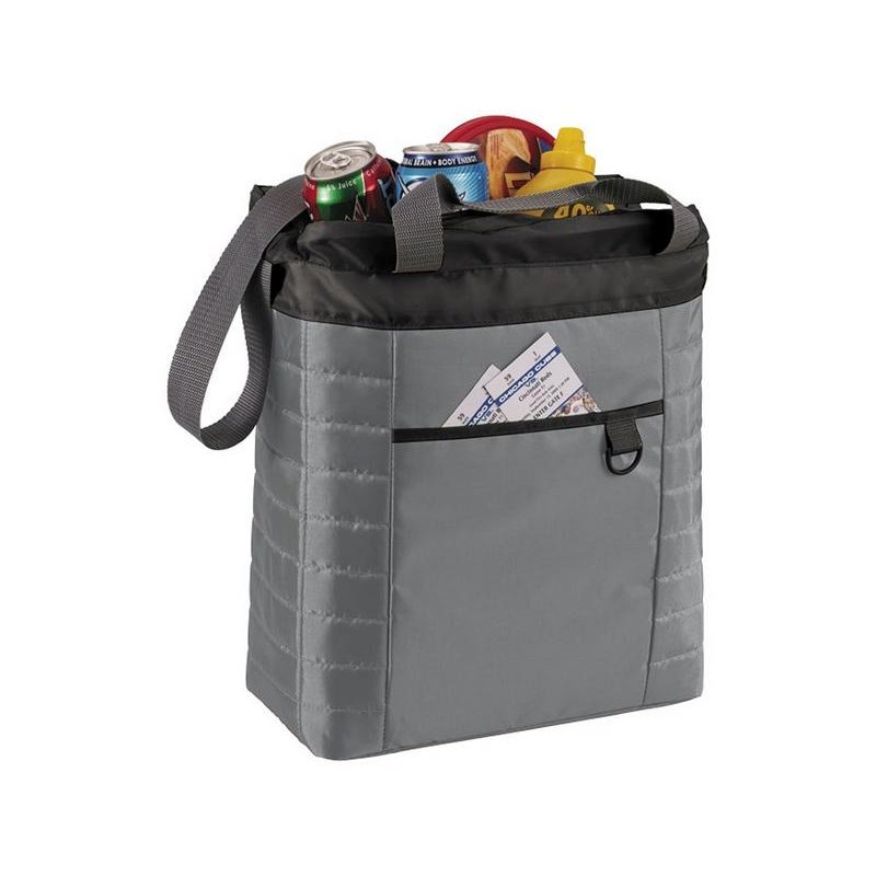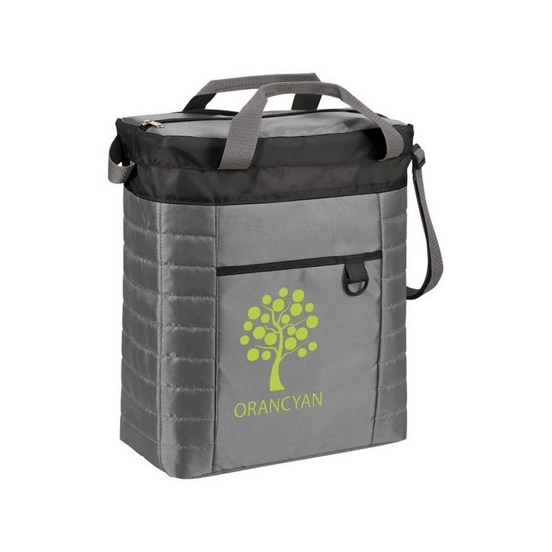 Стеганая сумка-холодильник. В комплекте: регулируемый ремень на плечо и ручки высотой 14 см. Стеганый корпус. Изоляционное отделение на молнии. Есть карман спереди и пластиковая петелька для ключей. 210D нейлон/ПВХ.