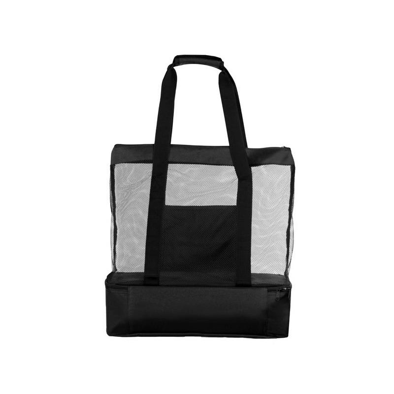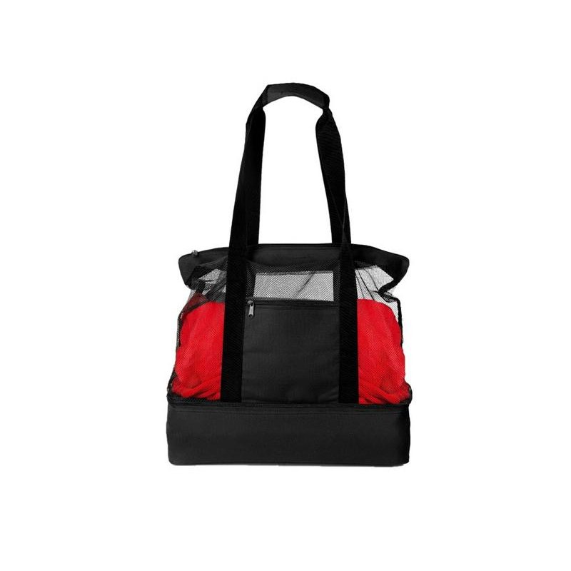 Вместительная пляжная сумкас отделением -холодильником внизу. Удобно брать холодные напитки на пляж. Сетчатая ткань способствует просыханию пляжных вещей. Комфортные длинные ручки фиксируются вместе застежкой липучкой. Все отделения и наружный карман для мелочей застегиваются на молнию. Благодаря большой вместительности сумку можно использовать для шоппинга.