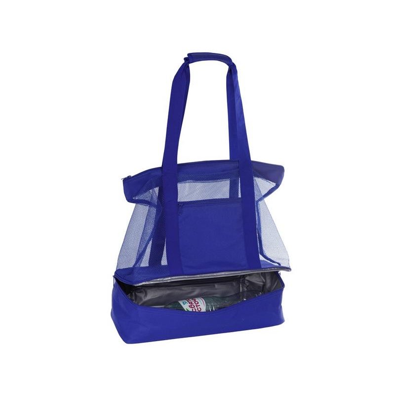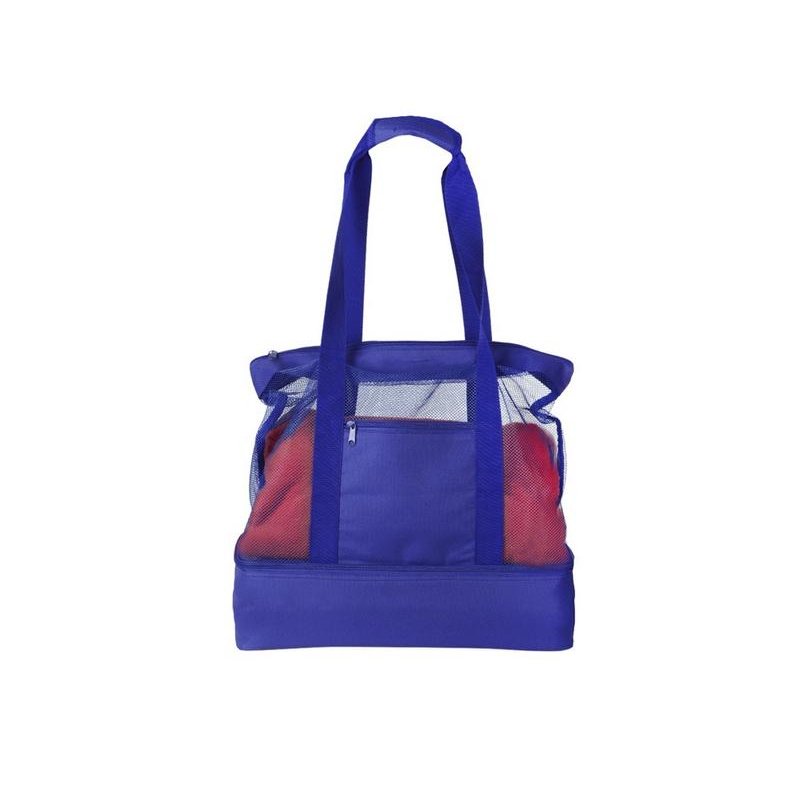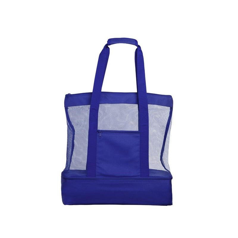 Вместительная пляжная сумкас отделением -холодильником внизу. Удобно брать холодные напитки на пляж. Сетчатая ткань способствует просыханию пляжных вещей. Комфортные длинные ручки фиксируются вместе застежкой липучкой. Все отделения и наружный карман для мелочей застегиваются на молнию. Благодаря большой вместительности сумку можно использовать для шоппинга.