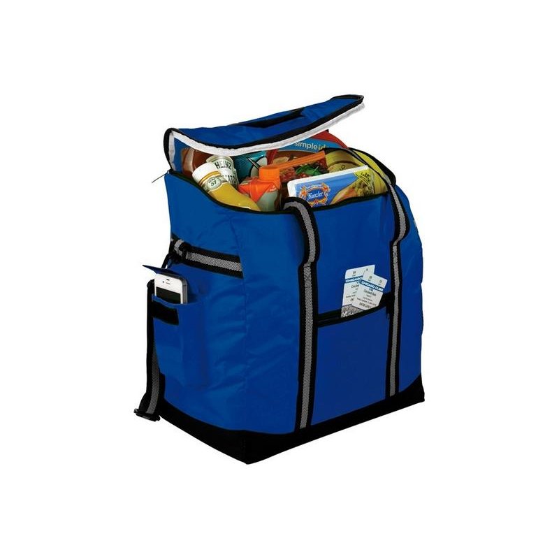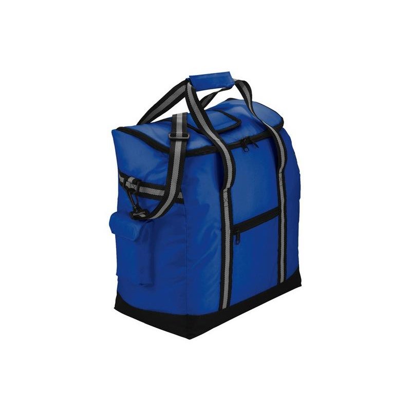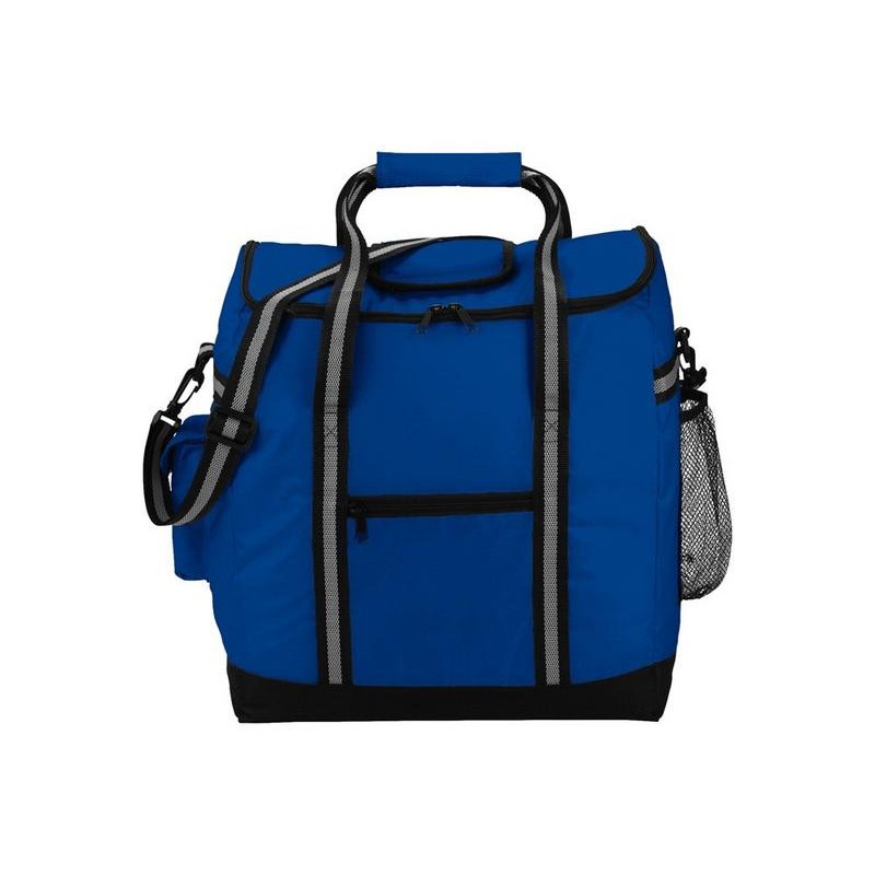 Сумка-холодильник имеет основное отделение на молнии. Передний карман на молнии. Боковой сетчатый карман. Боковой карман с застежкой на липучке. Две усиленные ручки. Съемный регулируемый плечевой ремень.