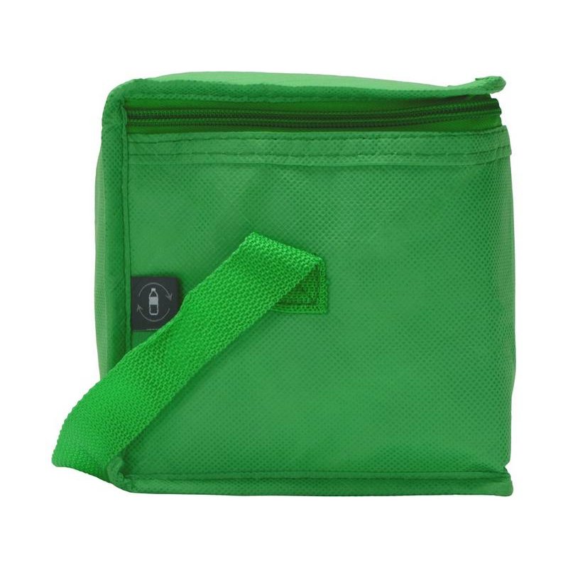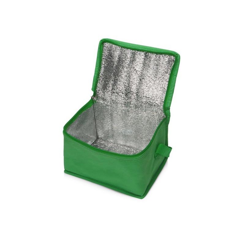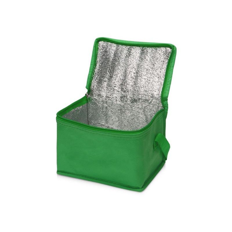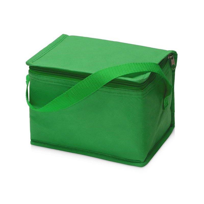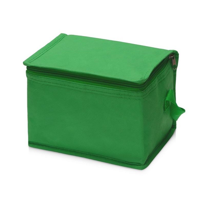 Сумка-холодильник из переработанного пластика. Вмещает 6 банок по 0.33 л. Закрывается на молнию. Удобная ручка для переноски.